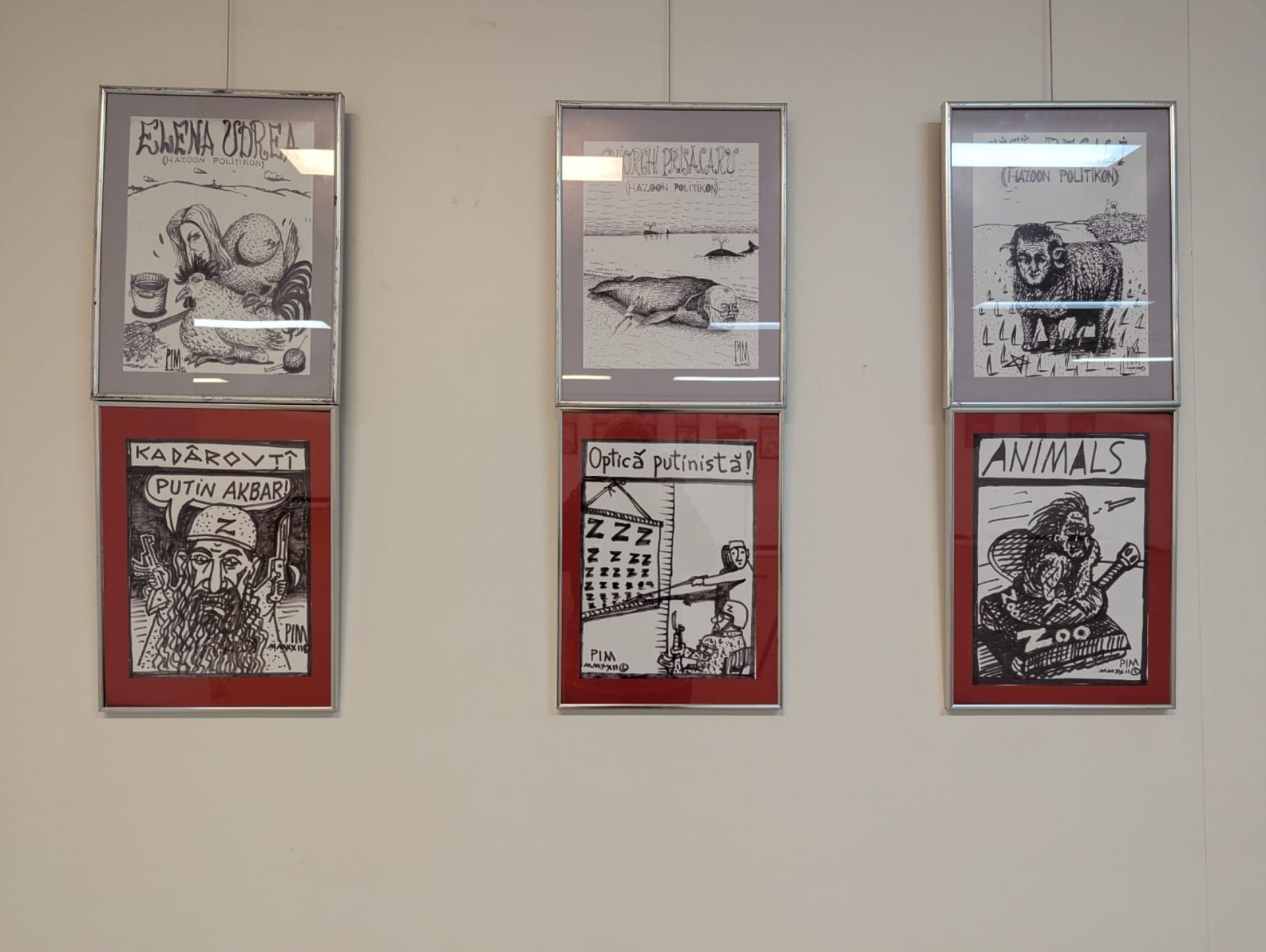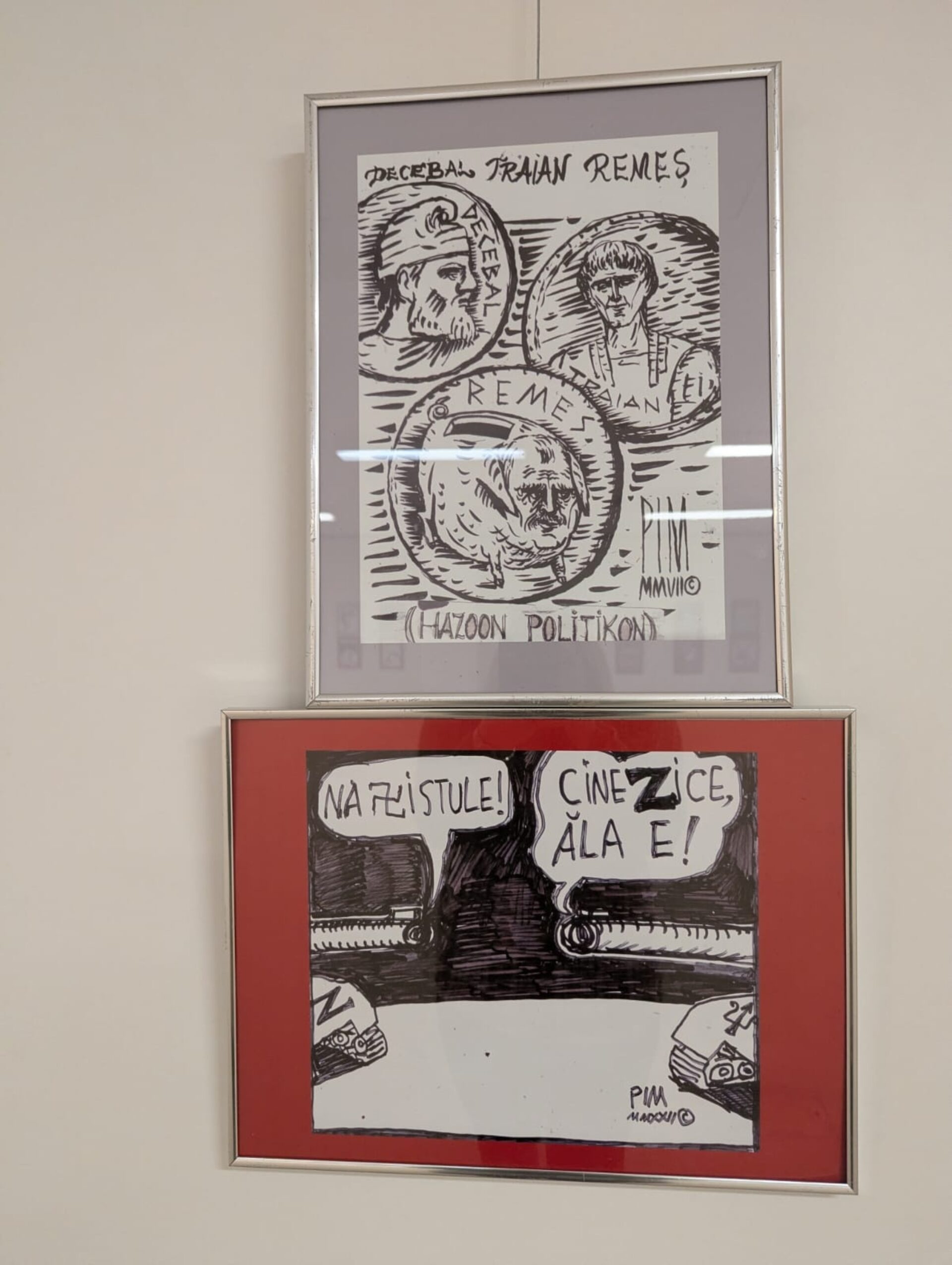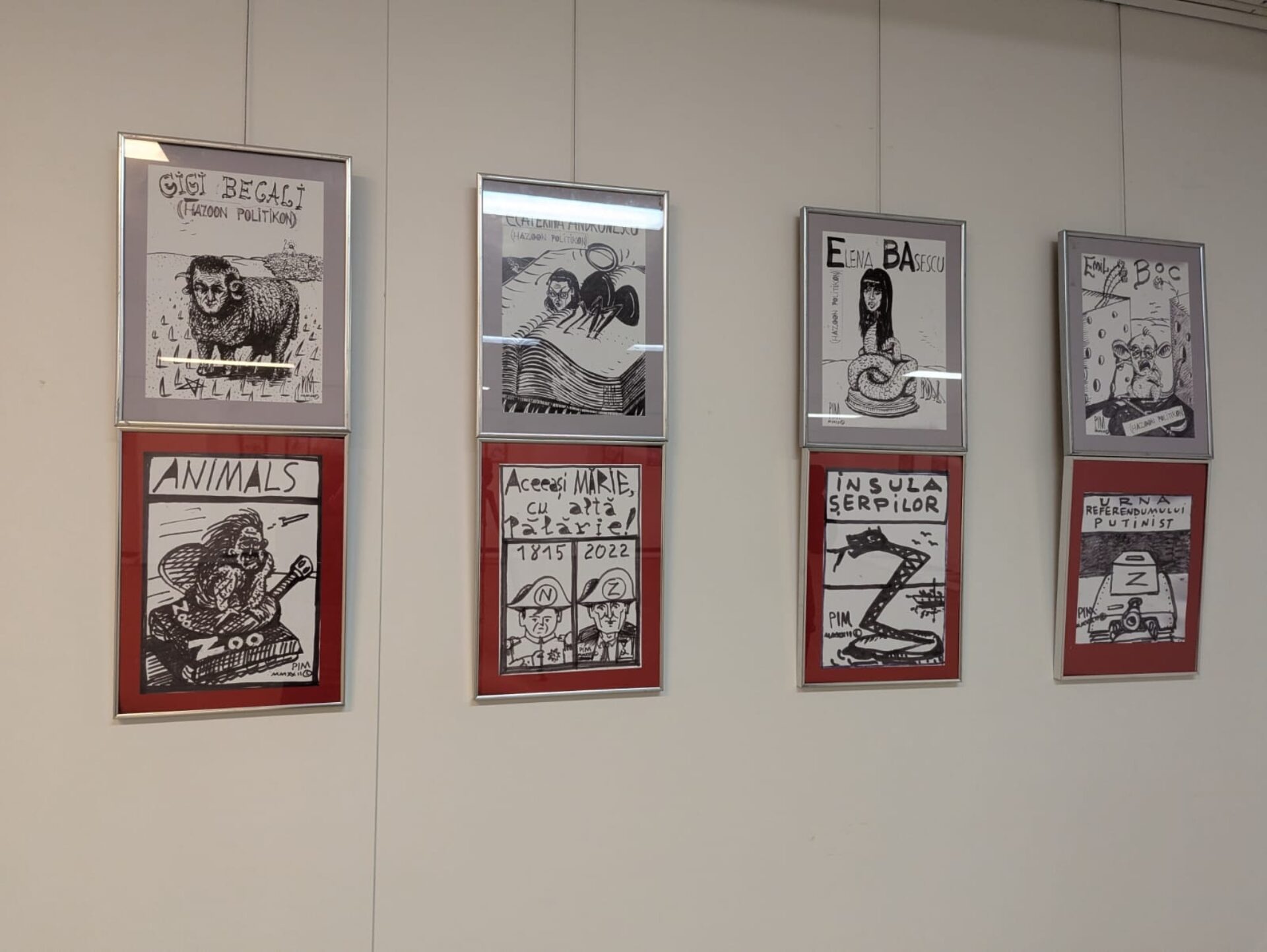 Drd. Delia Ioana Leizeriuc a mai adăugat că în seria Hozoon Politikon din expoziție, „ființa umană este redusă la reflexele ei cele mai primitive: lăcomia, frica, agresivitatea, impostura. Animalizarea nu este insultă, ci diagnostic antropologic. PIM lucrează cu arhetipuri, nu cu portrete conjuncturale, iar aceasta explică de ce caricaturile sale rămân actuale dincolo de momentul politic imediat”.