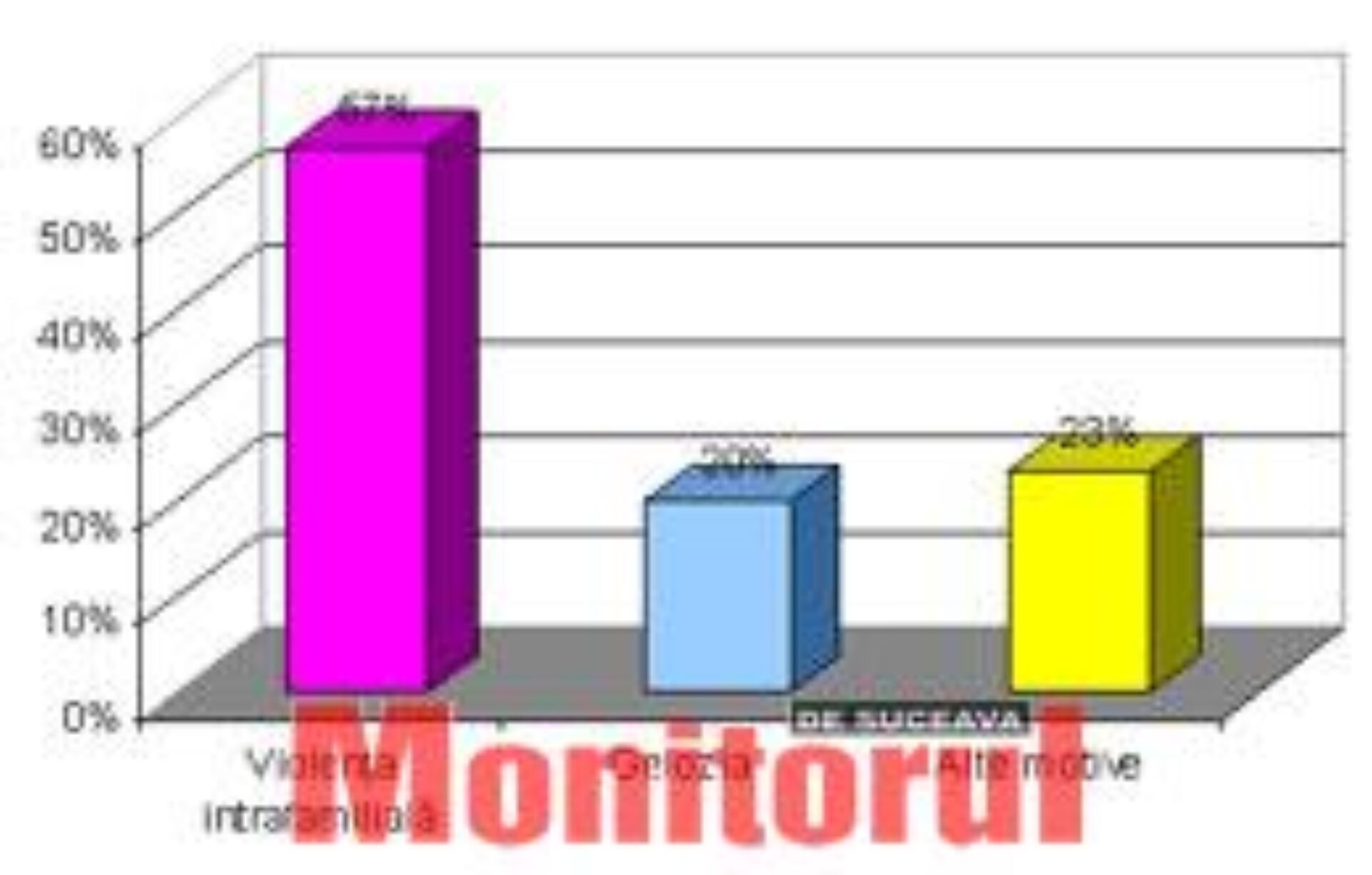 Violența intrafamilială este principala cauză pentru care mii de cupluri s-au despărțit pe holurile Tribunalului Suceava. Conform unui studiu finalizat recent de Serviciul Județean de Medicină Legală (SJML) Suceava, numai în ultimii șapte ani pe rolul Tribunalului Suceava s-au înregistrat în jur de 14.000 de dosare de divorț.