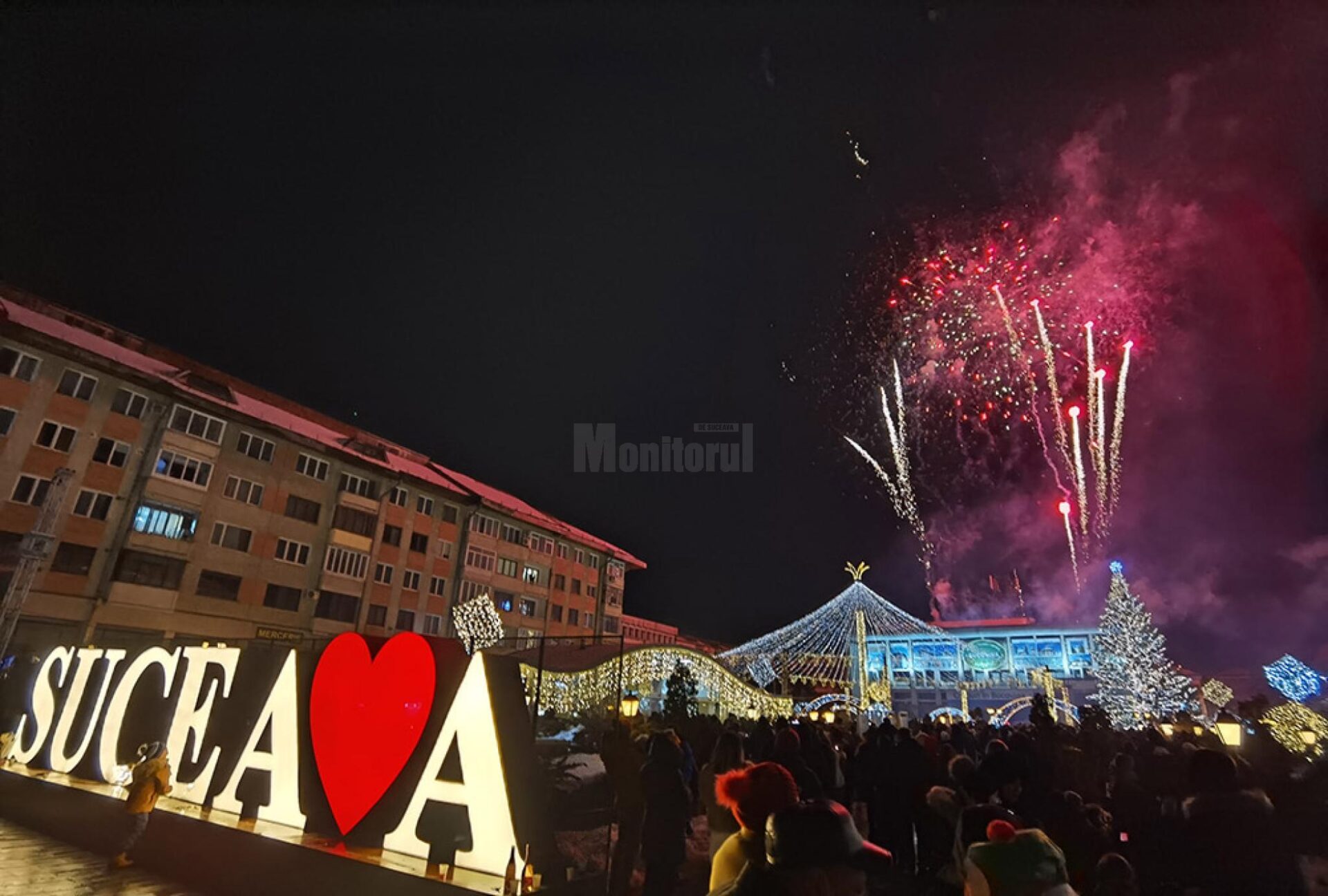 Răspândiți pe toată zona centrală, de la biserica Sf. Dumitru până la Palatul Administrativ și de pe treptele Casei de Cultură până la fântâna arteziană de la stradă, din dreptul blocului Union, miile de suceveni au așteptat cu nerăbdare miezul nopții, pentru ca trecerea în Noul An să fie marcată de focul de artificii.