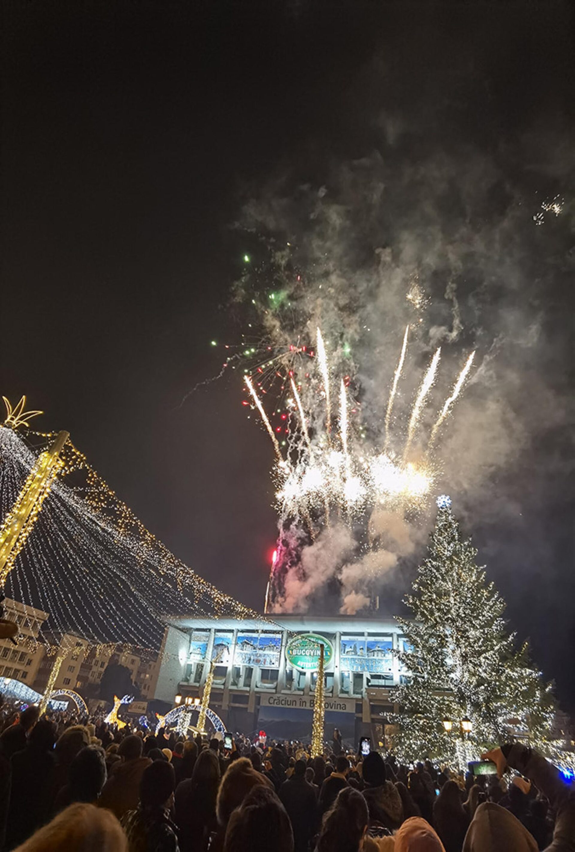 Tradiția sărbătoririi Revelionului în aer liber, ca înainte de pandemie, a revenit la Suceava, unde mii de oameni s-au adunat pe esplanada centrală pentru a vedea cel mai lung dar și impresionant foc de artificii din întreaga regiune a Moldovei.