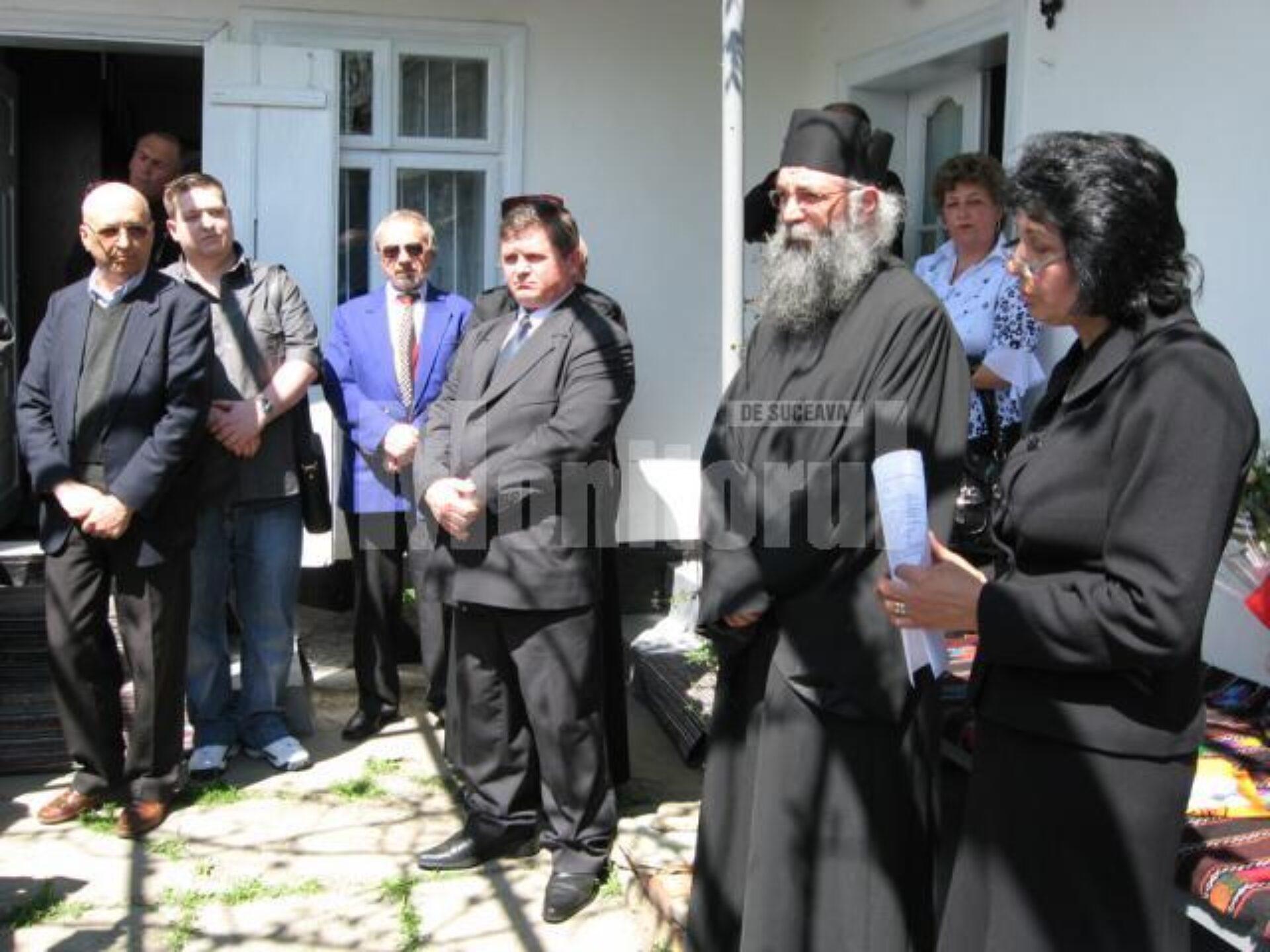 Copiii, cu ramuri de liliac înflorit, ne-au întâmpinat și în curtea casei părintești. Casă pe peretele căreia s-a dezvelit, de către Melchisedec Velnic, starețul mănăstirii Putna, placa pe care s-a scris: „Casa Memorială Mircea Motrici, 1953-2007, Udești”.