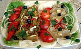 Vinetele și ardeii se coc pe o plită, se îndepărtează coaja, codița și semințele din ardei și se așează pe un fund înclinat pentru a se scurge. Vinetele se toacă cu un cuțit de lemn sau un satâr din oțel inoxidabil. Se amestecă vinetele cu un mixer sau o lingură de lemn, adăugându-se uleiul puțin câte puțin. La sfârșit se potrivește gustul de sare. După gust se poate adăuga puțină ceapă tocată sau puțin mujdei de usturoi. Peste ardei, după ce au fost curățați se va turna pe deasupra uleiul amestecat cu oțetul subțiat cu apă și mujdeiul de usturoi. Se așează toate pe un platou și se ornează platoul cu roșii, ceapă și verdeață.
