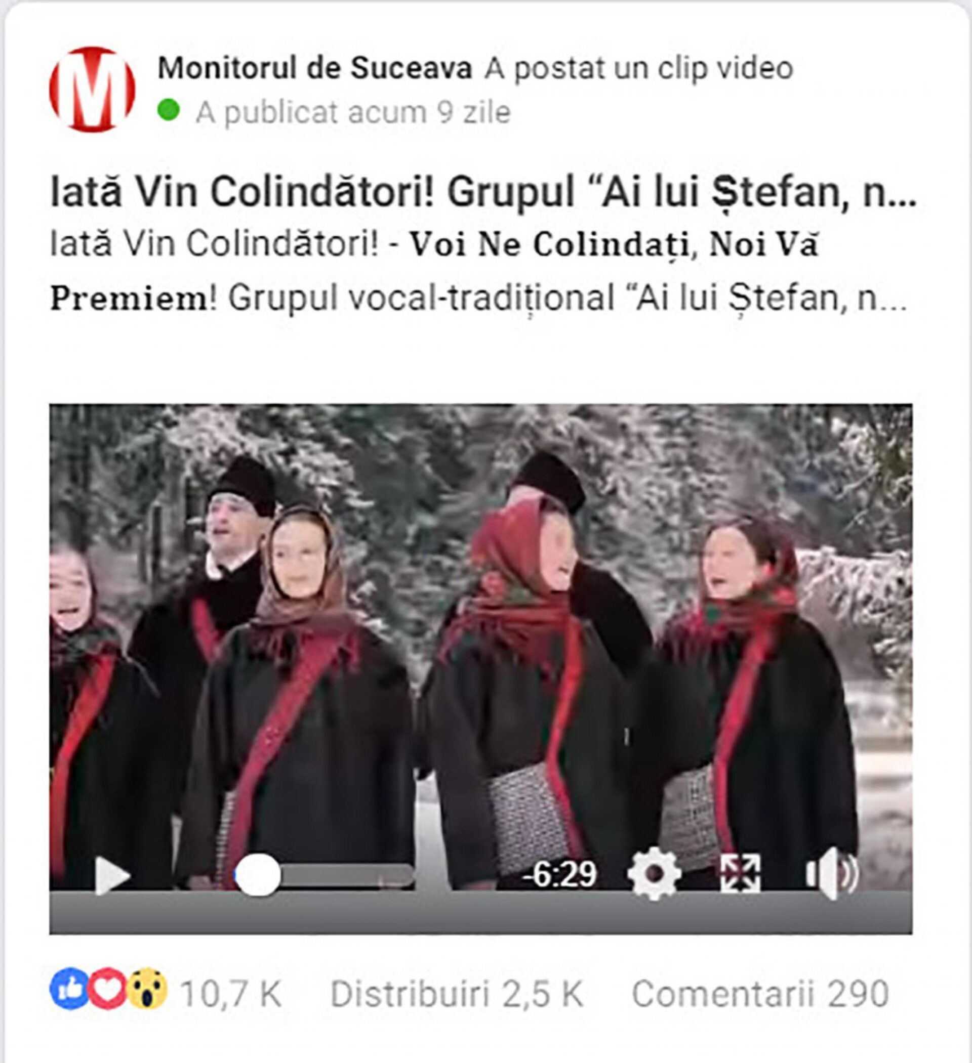 Colindul acestora a adunat aproape 11.000 de like-uri și peste 2.500 de distribuiri, totalizând aproape 70.000 de minute de vizionare, conform statisticilor paginii de Facebook Monitorul de Suceava, cele mai multe vizualizări ale clipului video fiind din județele Suceava, București, Iași, Bacău, Botoșani, Neamț, Brașov, Timiș, Vaslui, iar ca țări, pe lângă România, cele mai multe fiind din Italia, Anglia, Germania, Republica Moldova, Spania și Franța.