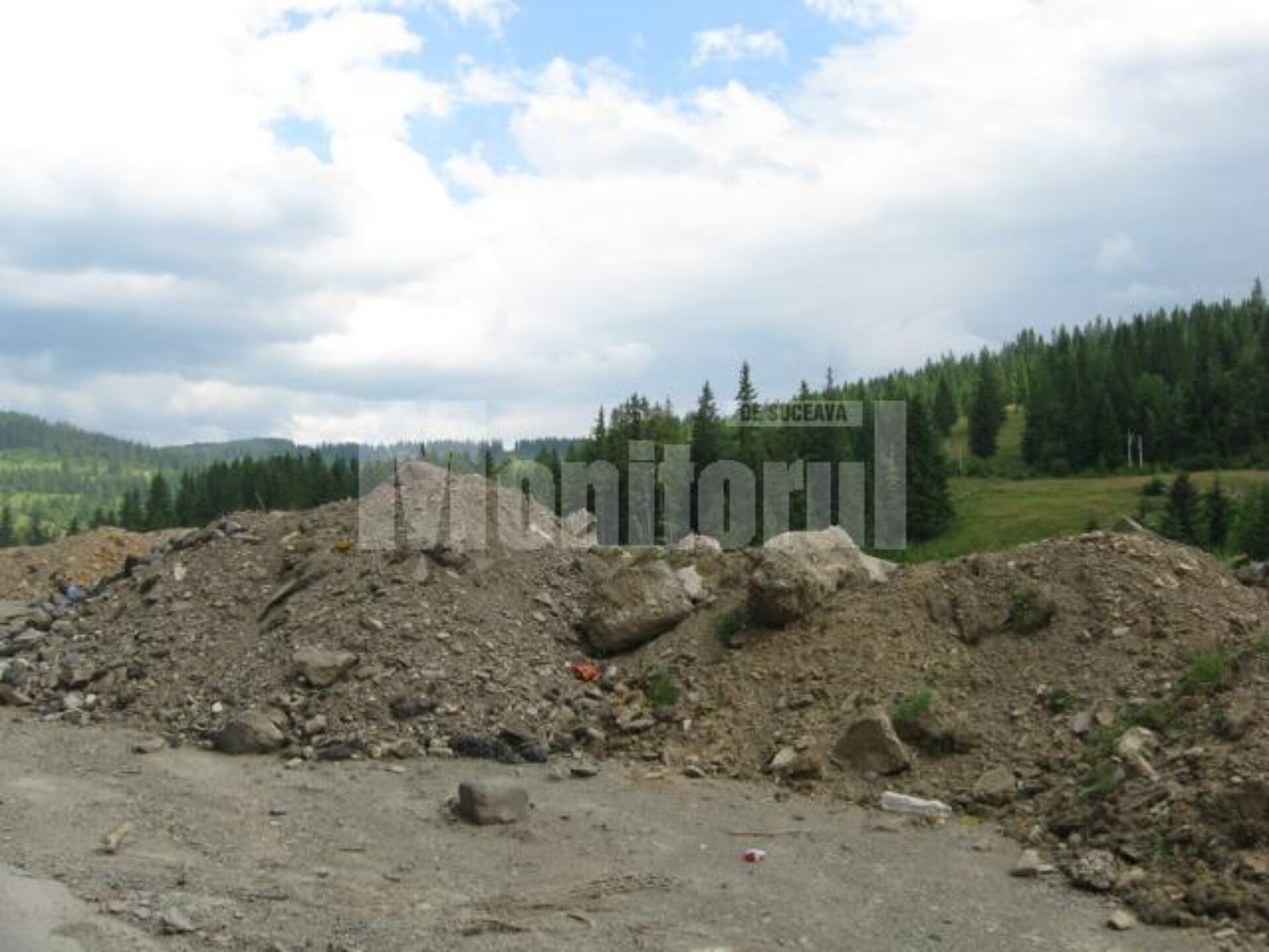 Sute de tone de moloz rezultat în urma lucrărilor de modernizare a DN 17 de la Suceava până la Poiana Stampei sunt depozitate necontrolat pe marginea drumului, creând un peisaj dezolant pentru toți cei care vizitează Bucovina.