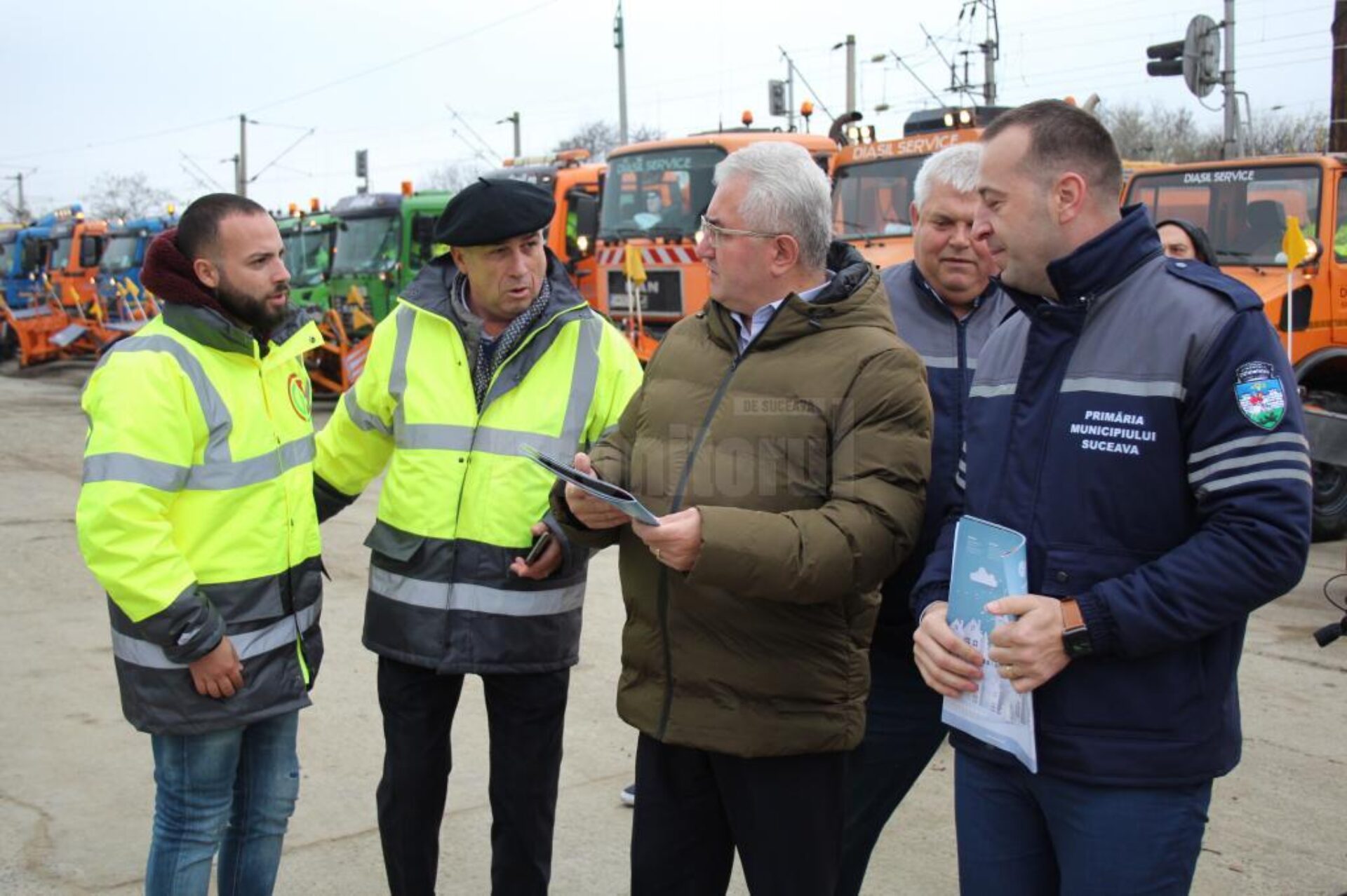 Stadiul pregătirilor pentru intervențiile necesare în sezonul rece, făcute de către firma Diasil, care se ocupă de salubrizarea stradală și deszăpezirea municipiului reședință de județ, a fost verificat joi dimineață de primarul Sucevei, Ion Lungu, împreună cu viceprimarul Lucian Harșovschi și personalul de specialitate din primărie.