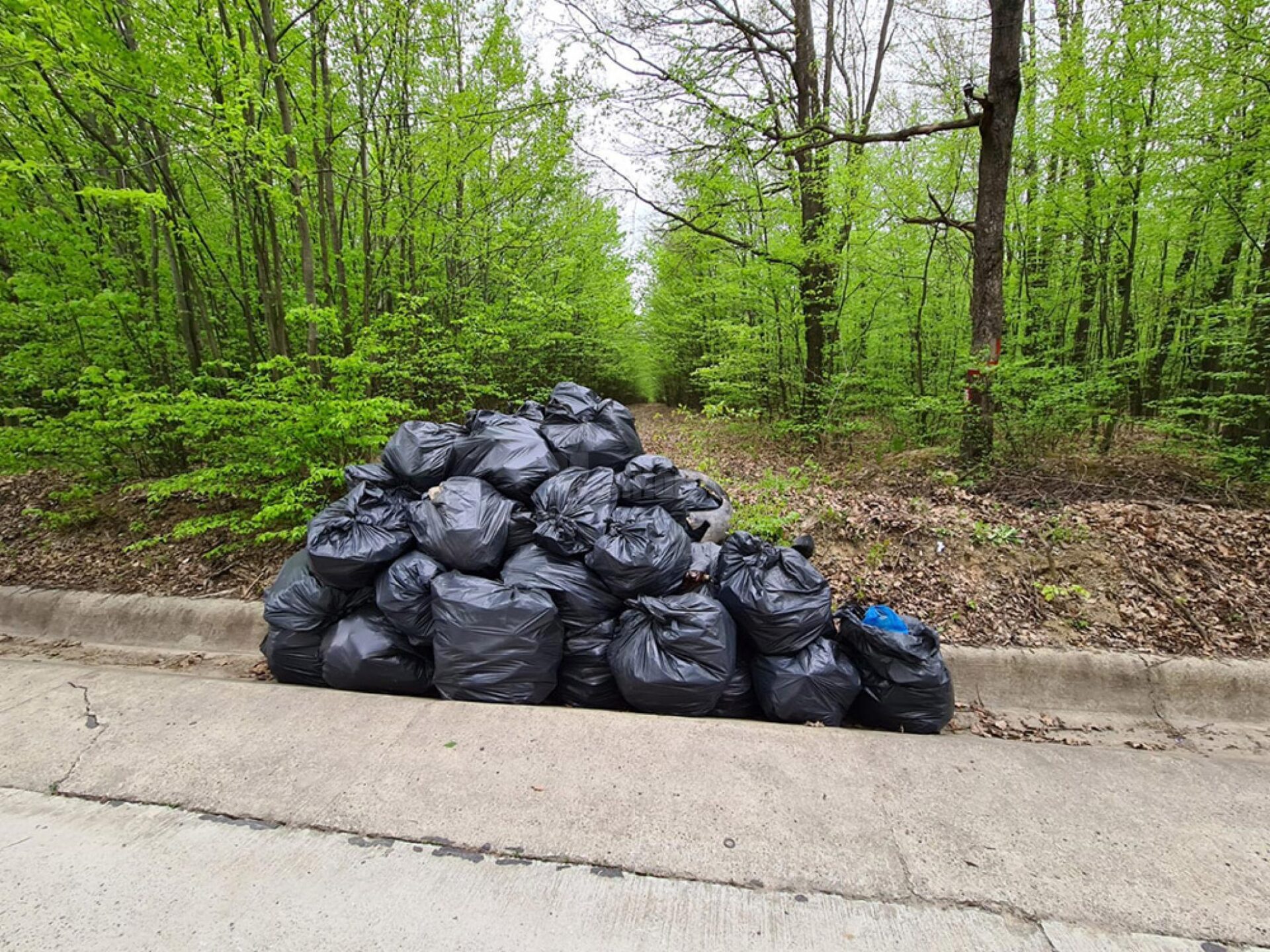 Munți de gunoaie au fost adunați din pădurea din zona drumului care leagă Adâncata de Fetești