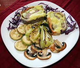 Mușchiul de vită se fasonează și se taie în două pe lung. O bucată de mușchi se bate cu ciocanul de șnițel și se întinde pânp se poate rula. Carnea rămasă se dă prin mașina de tocat, se adaugă ceapa tocată mărunt, usturoil, două ouă și se condimentează. Dintr-un ou și făină se face o clătită. Clătita se întinde pe mușchiul de vită bptut și se umple cu tocătura. Se dă la cuptor și se lasă cca. 90 min la temp de 2000C. După coacere se lasă la răcit pentru a se putea tăia.