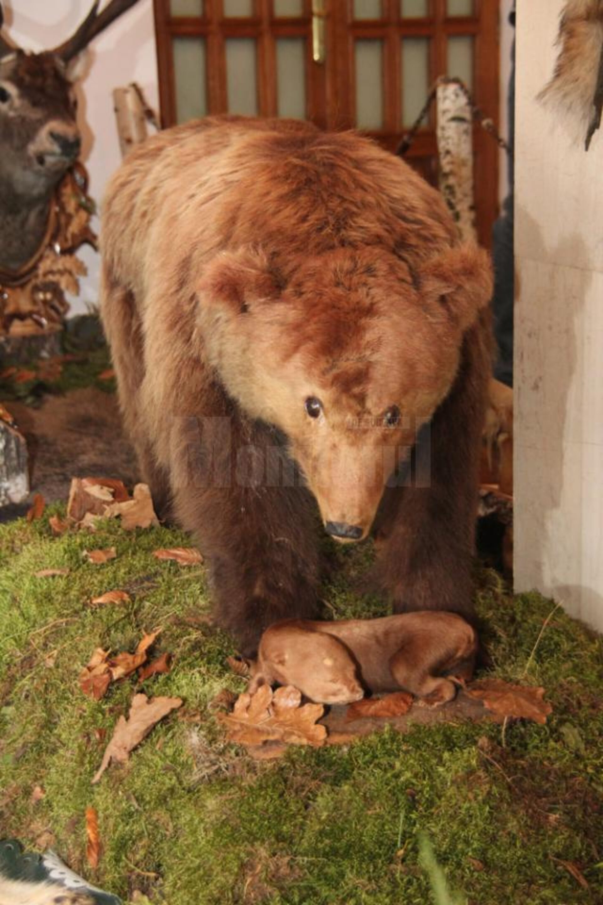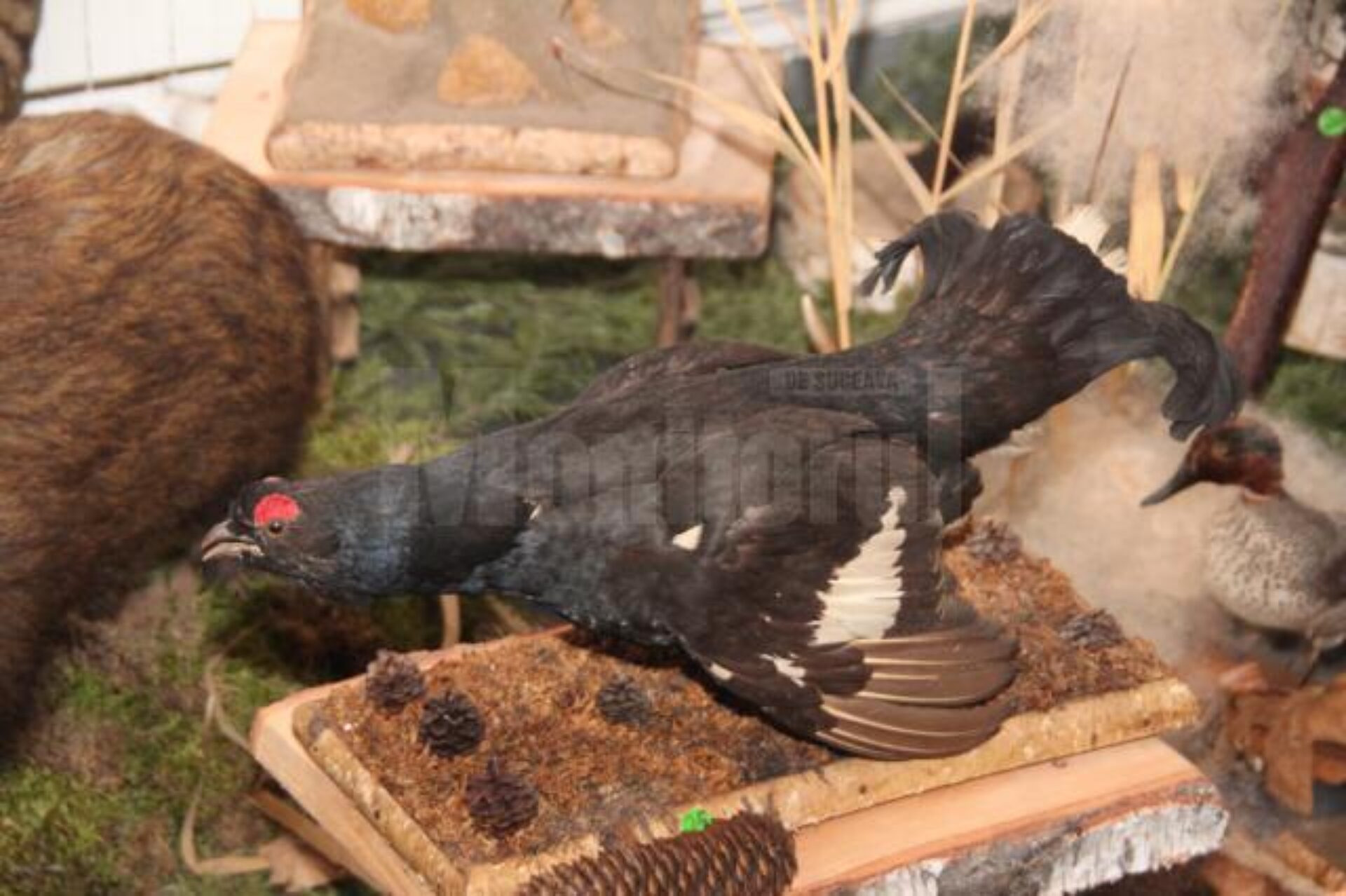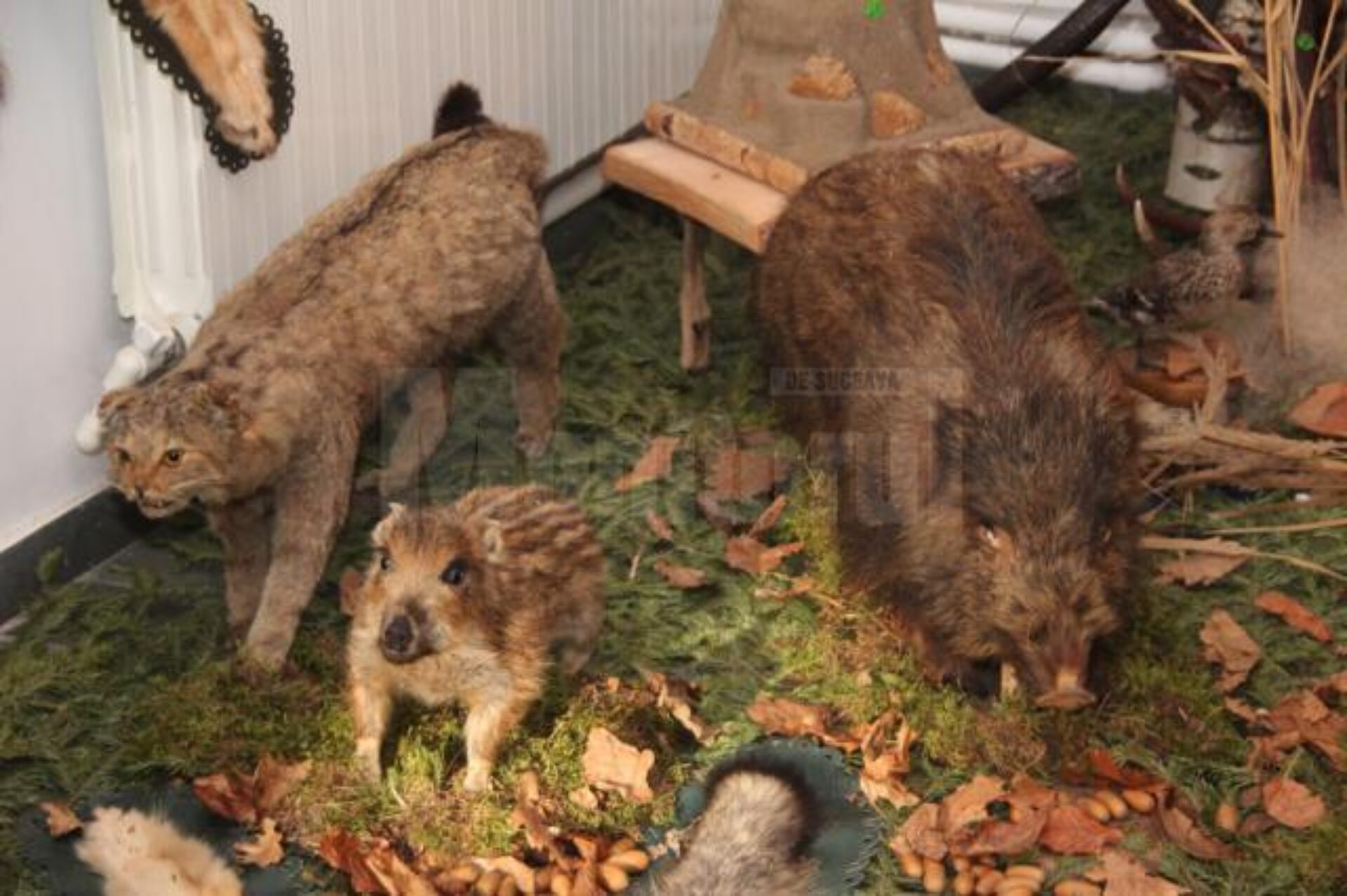 Animalele pădurilor Sucevei sunt prezente în expoziție printr-un frumos exemplar tânăr de urs brun, porci mistreți, jderi, marmote, dar și prin busturi de cerbi, căpriori, blănuri de lup, râs, vulpi, dar și colți de mistreți.