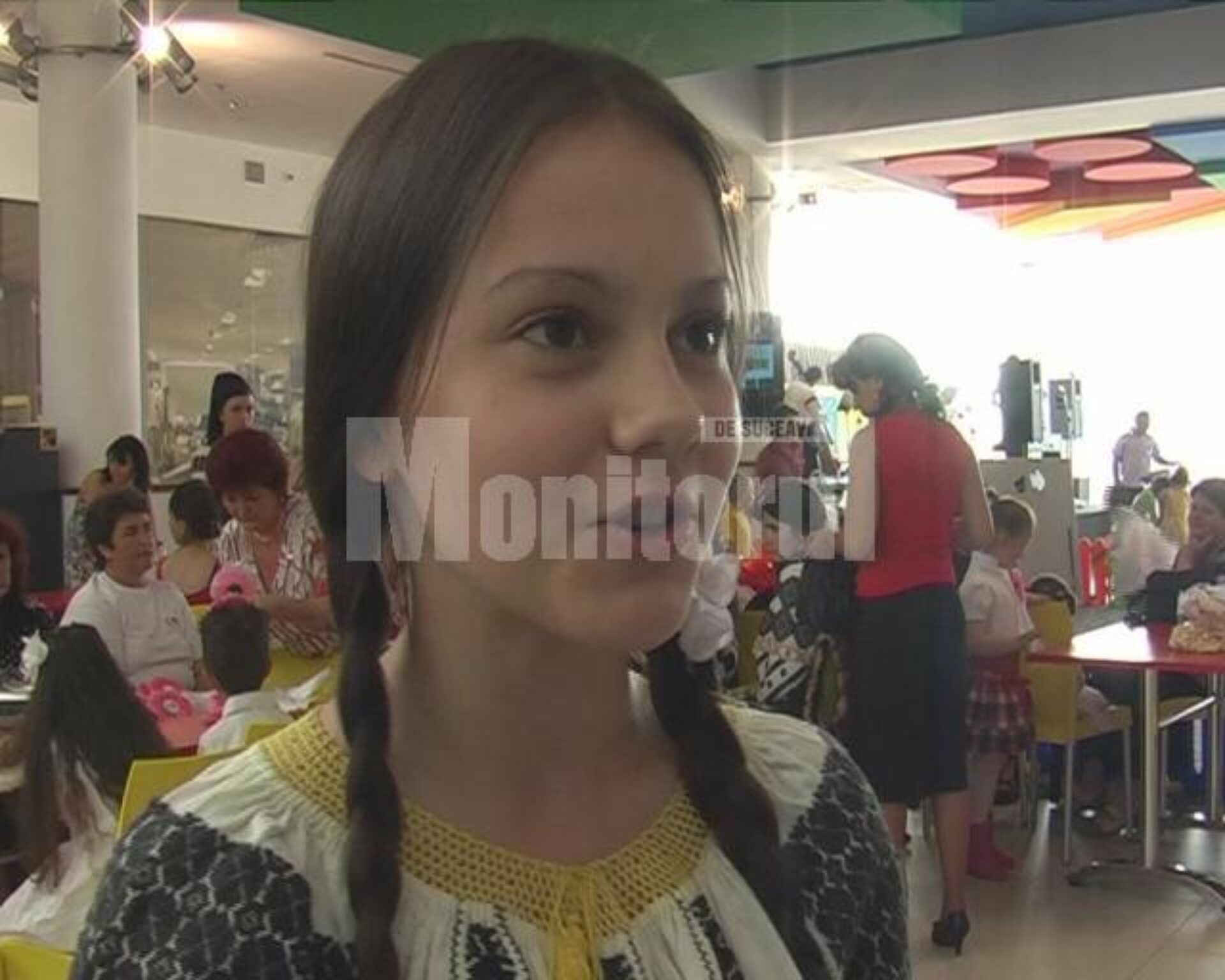 Printre elevii care așteptau cu emoție să urce pe scenă am întâlnit-o și pe Andreea Chiseliță, elevă în clasa a VI-a, la Colegiul de Artă „Ciprian Porumebscu” Suceava, unde studiază flaut și pian. Tânăra a ales să studieze și canto – muzică populară, la Școala Populară de Arte „Ion Irimescu”, unde este în anul al doilea, fiind coordonată de profesoara Valentina Tablan Popescu. Ea își dorește să ducă mai departe folclorul românesc.