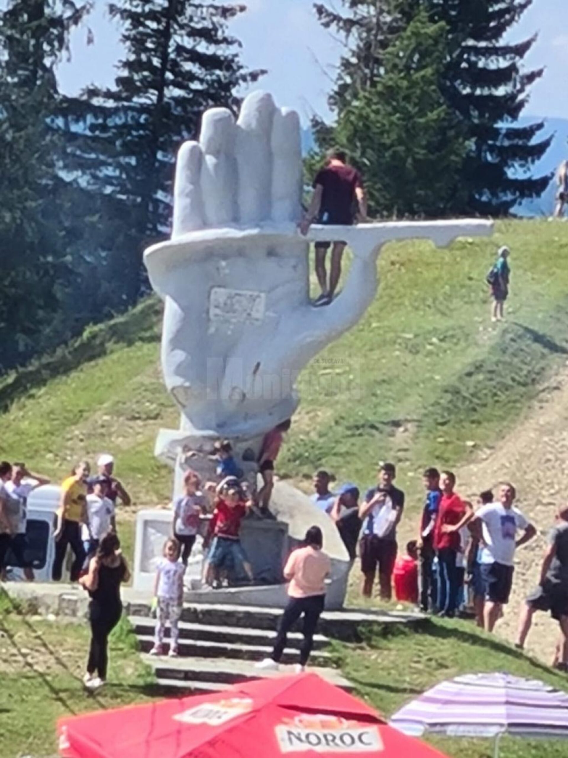 Și pentru ca totul să fie încununat de succes, o parte dintre cei care au ales să-și petreacă timpul liber la Palma nu au găsit altceva mai bun de făcut decât să urce pe monument pentru a se fotografia. În această situație a fost un adolescent care s-a urcat efectiv pe linia din Palmă (de pe monument) pentru ca amicii lui să-l fotografieze. Tot pe monument unii părinți și-au urcat copiii minori pentru a-i imortaliza într-o amintire de neuitat. Nimeni nu s-a gândit însă că acel monument nu a fost proiectat pentru ca oamenii să urce pe el și s-ar putea să cedeze și să provoace un accident cu urmări neprevăzute.