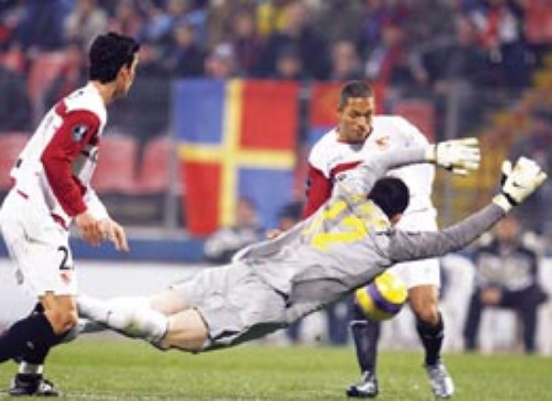 Echipa Steaua București a pierdut, joi, pe teren propriu, cu scorul de 0-2 (0-1), meciul cu formația spaniolă FC Sevilla, disputat în prima manșă a șaisprezecimilor Cupei UEFA. FC Sevilla a deschis scorul în minutul 41. Daniel Alves a executat o lovitură liberă de la 16 metri, poziție centrală, mingea a fost deviată de zid până la Poulsen, care a reluat în poartă de la cinci-șase metri. Echipa spaniolă și-a mărit avantajul în minutul 76, prin Frederic Kanoute, care a marcat din penalti, după un fault al lui Goian asupra lui Kerjakov. La meci au asistat 25.000 de spectatori. Înainte de meci s-a scandat numele lui Nicolae Dică, aflat în clinica de la Bologna. În urma cartonașului galben primit, Sorin Ghionea va fi suspendat pentru meciul retur.
