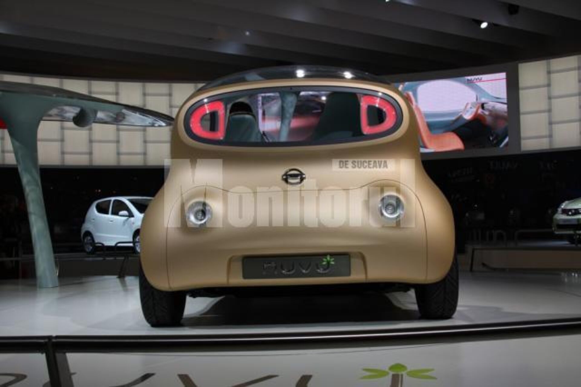 Interiorul, un simplu exercițiu de design, este destul de spațios cât să găzduiască trei persoane adulte. „Cel mai important aspect al conceptului Nuvu este designul interior care oferă spațiu și confort mare într-un pachet inteligent creat pentru a-l utiliza în cel mai bun mod cu putință pe șosele și în parcările aglomerate”, afirmă Bancon.