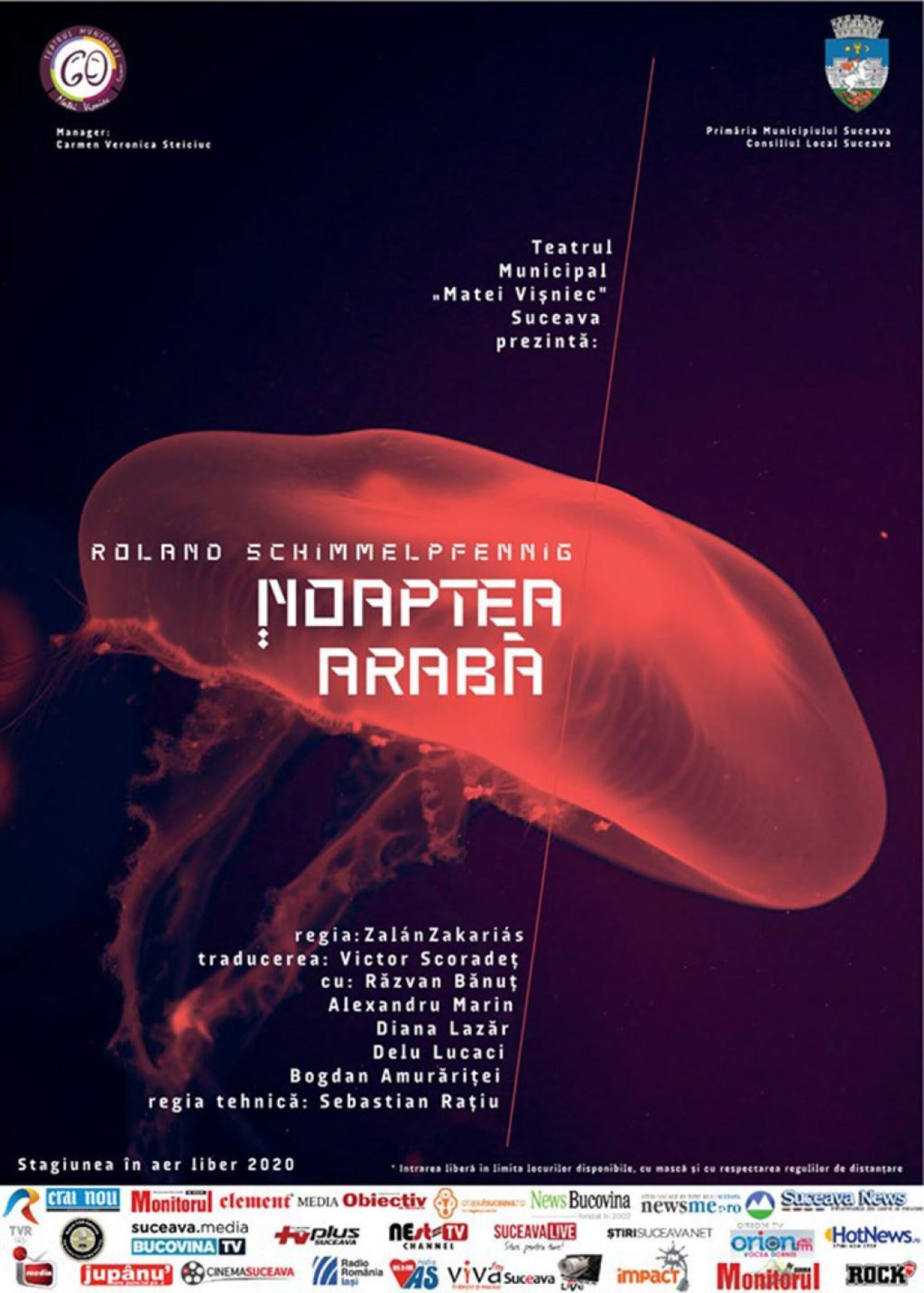„Noaptea arabă”, de Roland Schimmelpfennig, este noua producție a Teatrului Municipal „Matei Vișniec” Suceava și este realizată de regizorul Zalán Zakariás, cu care teatrul sucevean are deja o frumoasă colaborare.