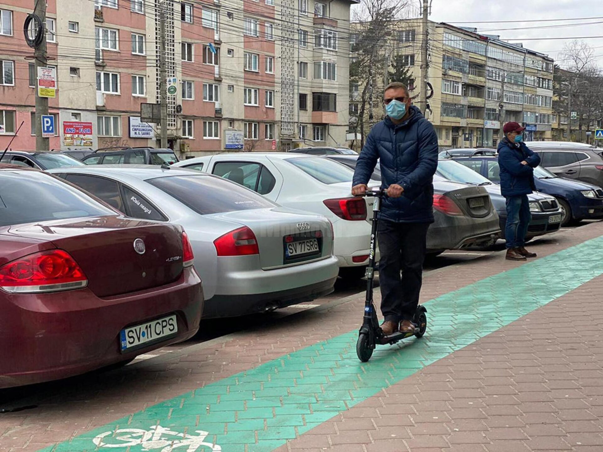 Dar cum la Suceava pistele pentru biciclete sunt trasate pe trotuar, câtă vreme se află pe spațiile marcate corespunzător, nu sunt probleme cu nerespectarea legii.