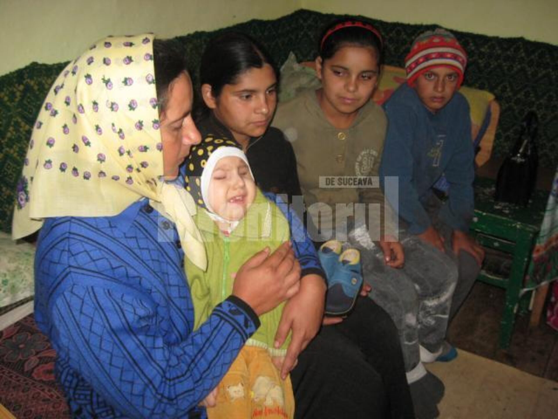 Femeia mai are trei copii, doi băieți gemeni în vârstă de cinci ani și o fetiță – Irina, de doar doi anișori. Cei doi gemeni ar trebui duși la grădiniță, dar sărăcia îi ține într-o cameră cu pereții afumați, fără jucării, fără o igienă corespunzătoare.