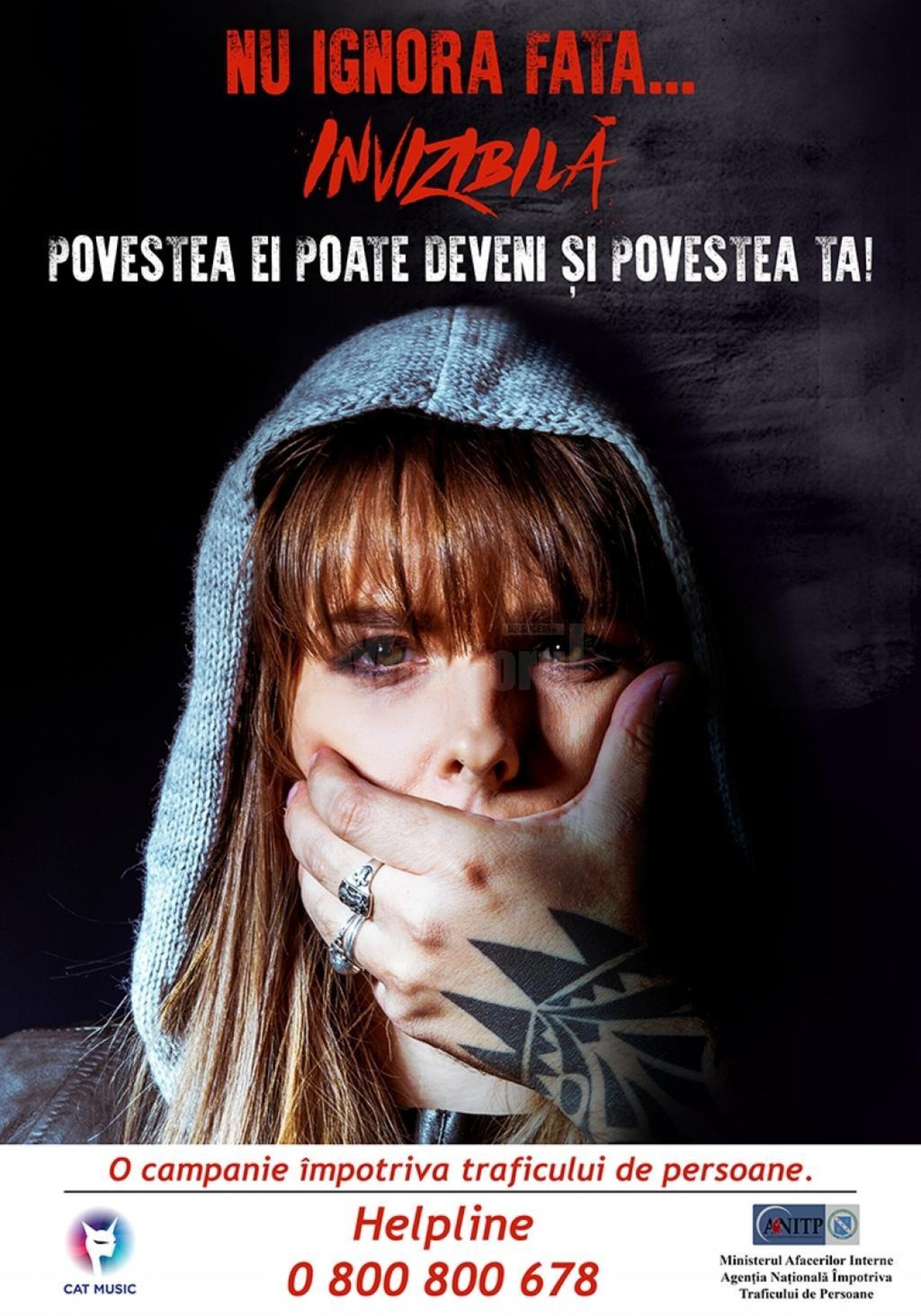 Centrul Regional Suceava al Agenției Naționale Împotriva Traficului de Persoane va derula, în perioada aprilie – iunie, Campania de prevenire a traficului de persoane „Nu ignora fața… invizibilă! Povestea ei poate deveni și povestea ta!”. Campania, lansată pe 14 aprilie, se desfășoară la nivel național și a fost demarată de Agenția Națională Împotriva Traficului de Persoane, cu sprijinul Casei de discuri „Cat Music”. La nivelul Centrului Regional Suceava al Agenția Națională Împotriva Traficului de Persoane se vor desfășura întâlniri directe atât cu tinerii cu vârste cuprinse între 14 și 25 de ani, cât și cu reprezentanți ai publicului larg, activități de informare ce se vor derula în școli gimnaziale, licee, în unitățile de învățământ superior, centrele de plasament și în taberele școlare; la diferite evenimente (festivaluri de film, muzică și teatru, târguri de joburi) la care participă tineri.Coordonatorul Centrului Regional Suceava, subcomisar de poliție Elisabeta LilianaOrza, ne-a spus că această campanie va viza prevenirea traficului de persoane în scopul exploatării sexuale. Cântăreața de muzică pop Brigitta Gheorghe (BRIGHI) va fi promotoarea campaniei, ea dorind astfel să se alăture luptei antitrafic din România. În egală măsură, mesajul campaniei „Nu ignora fața… invizibilă!” și sloganul acesteia „Povestea ei poate deveni și povestea ta!” sunt promovate în spotul campaniei de către solistă, care a avut la bază piesa muzicală „Invizibilă”.