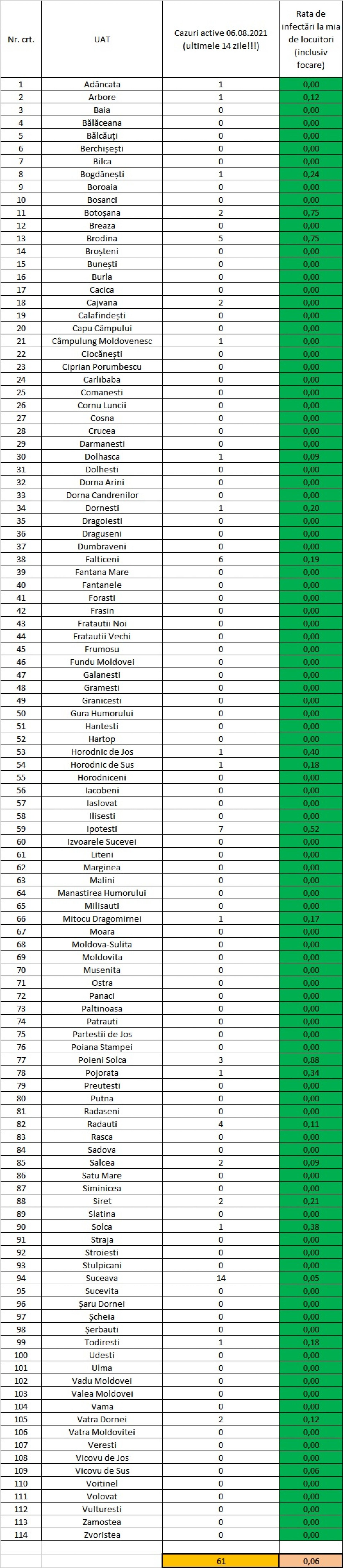 La această dată în județul Suceava sunt 61 cazuri de infecție Covid-19 în evoluție.