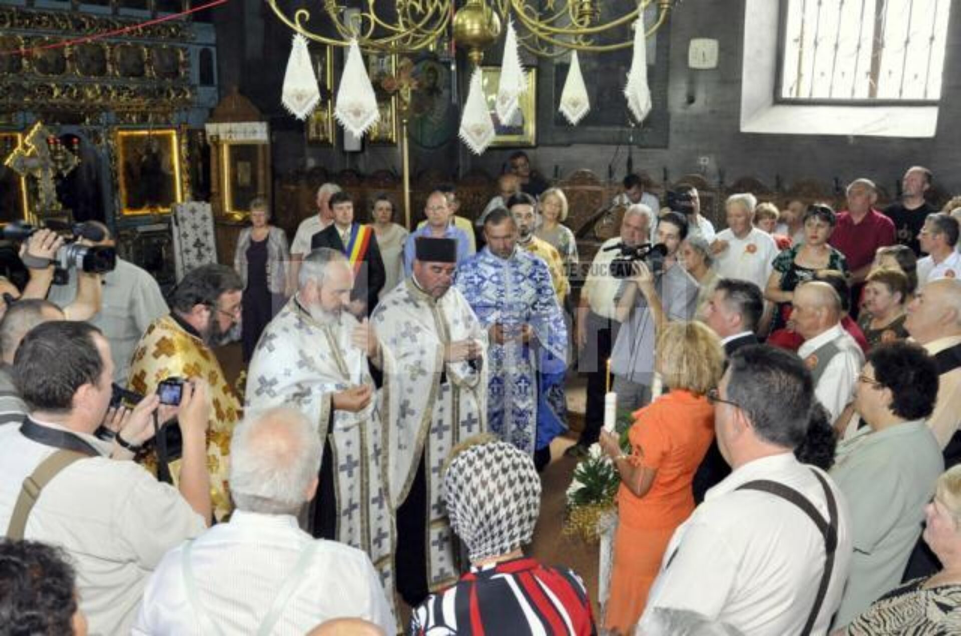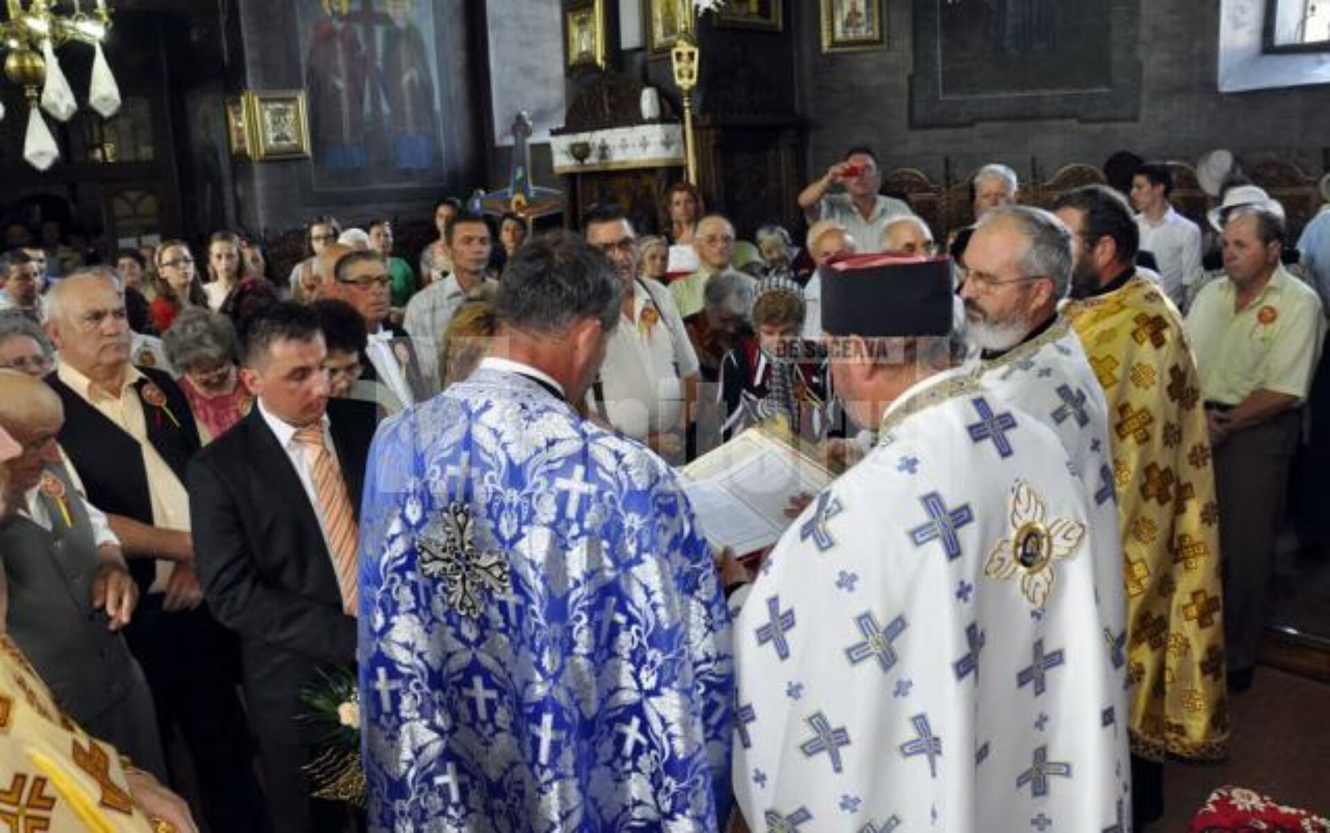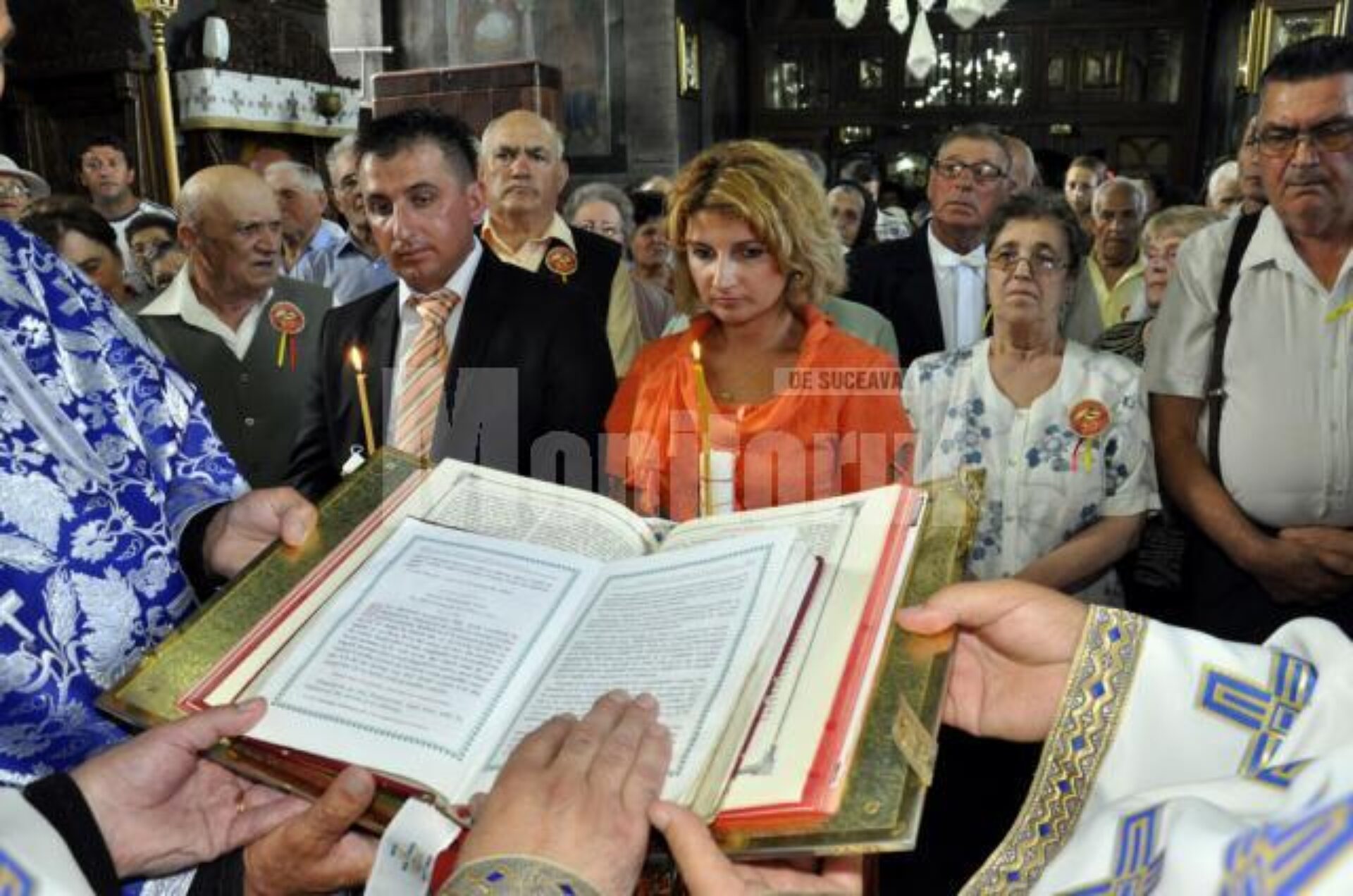Slujba de sărbătorire a „50 de ani de împreună-viețuire” a fost oficiată de un sobor de cinci preoți din protopopiatul Fălticeni.