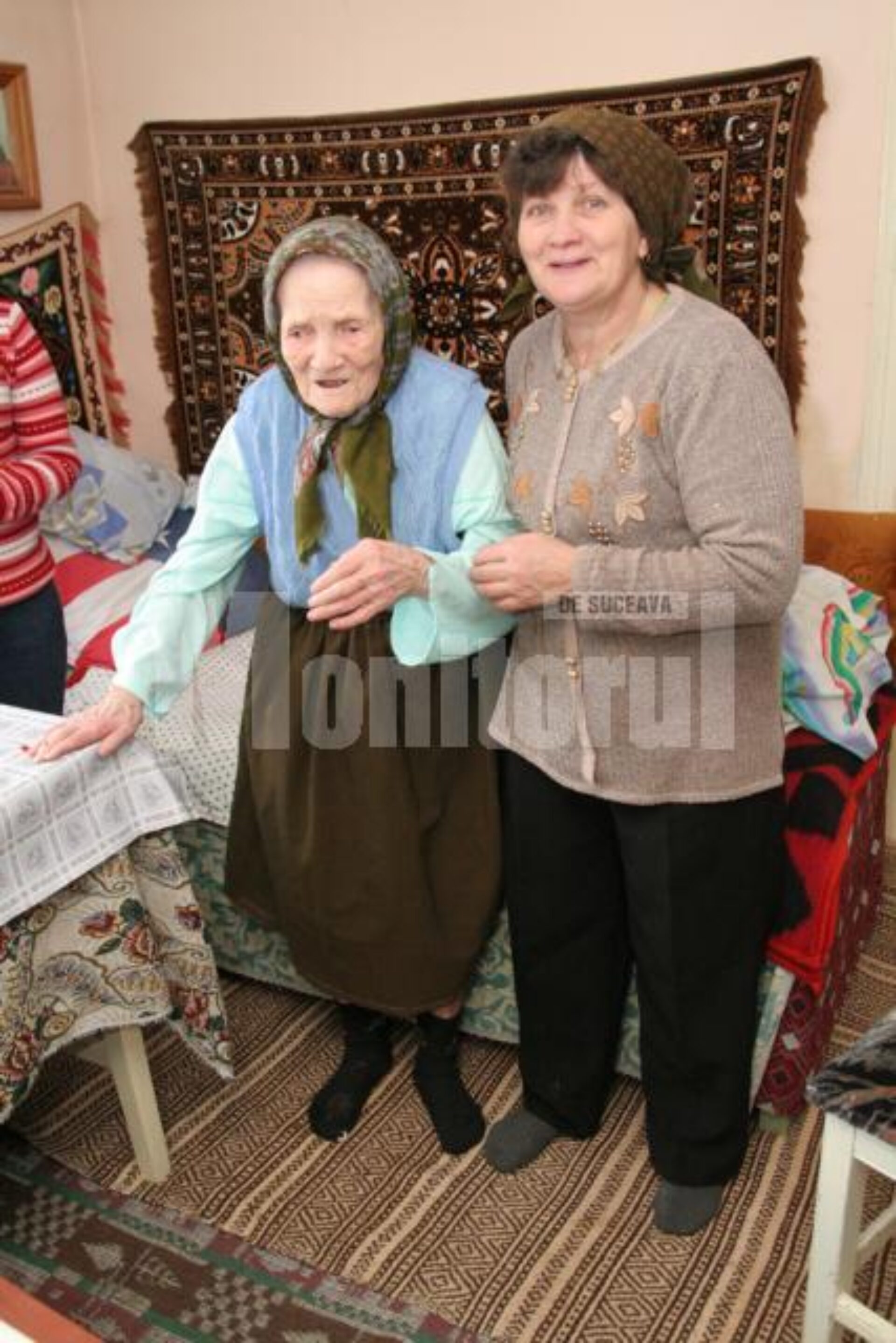 Chipul bătrânei nu-i trădează vârsta. Este senin, iar ochii ei albaștri te cercetează cu bunătate. Se bucură când cineva îi trece pragul și are cu cine să mai schimbe o vorbă. Femeia ne-a spus să secretul longevității este viața cumpătată, rugăciunea și munca.