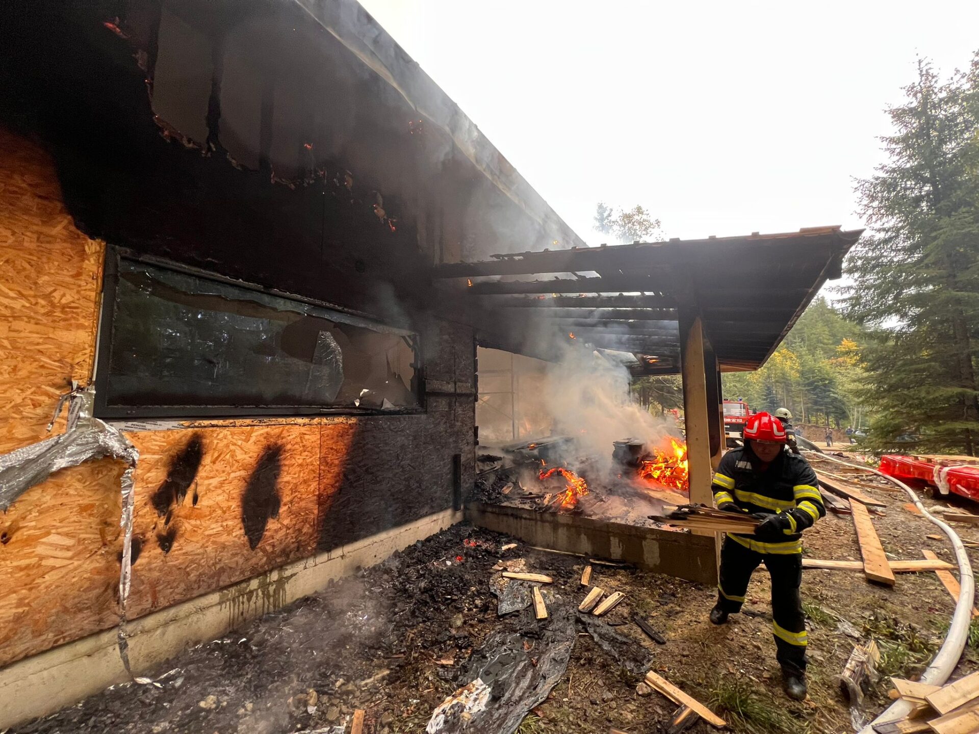 Pompierii militari au fost alertați, duminică dimineață, în jurul orei 9:00, cu privire la izbucnirea unui incendiu la o locuință particulară tip cabană aflată în fondul forestier, pe raza satului Sadău, comuna Brodina.