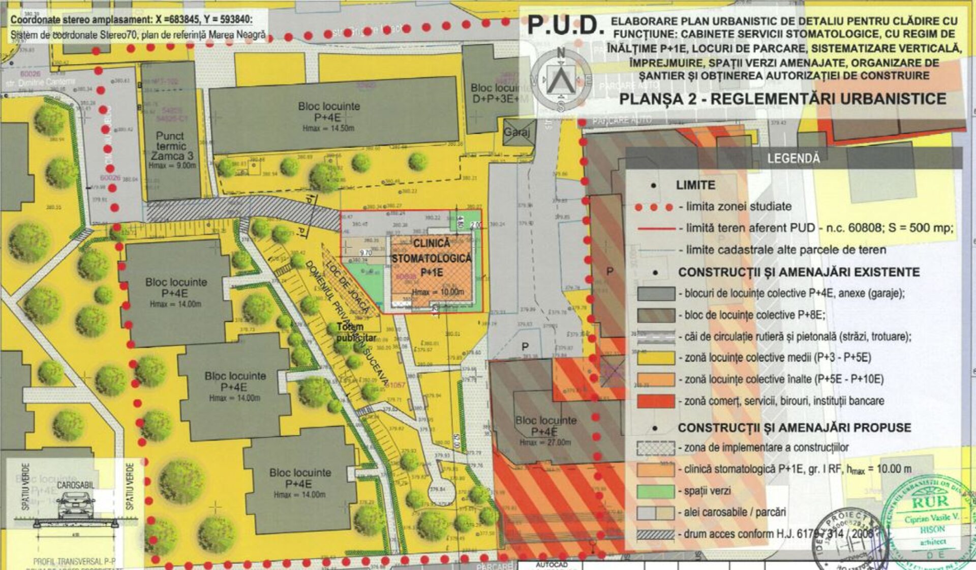 Conform documentației de autorizare a noii clădiri, care se va construi pe terenul din imediata apropiere a parcării amenajate după demolarea garajelor, acolo va apărea o clinică stomatologică, cu mai multe cabinete care vor oferi servicii din acest domeniu.