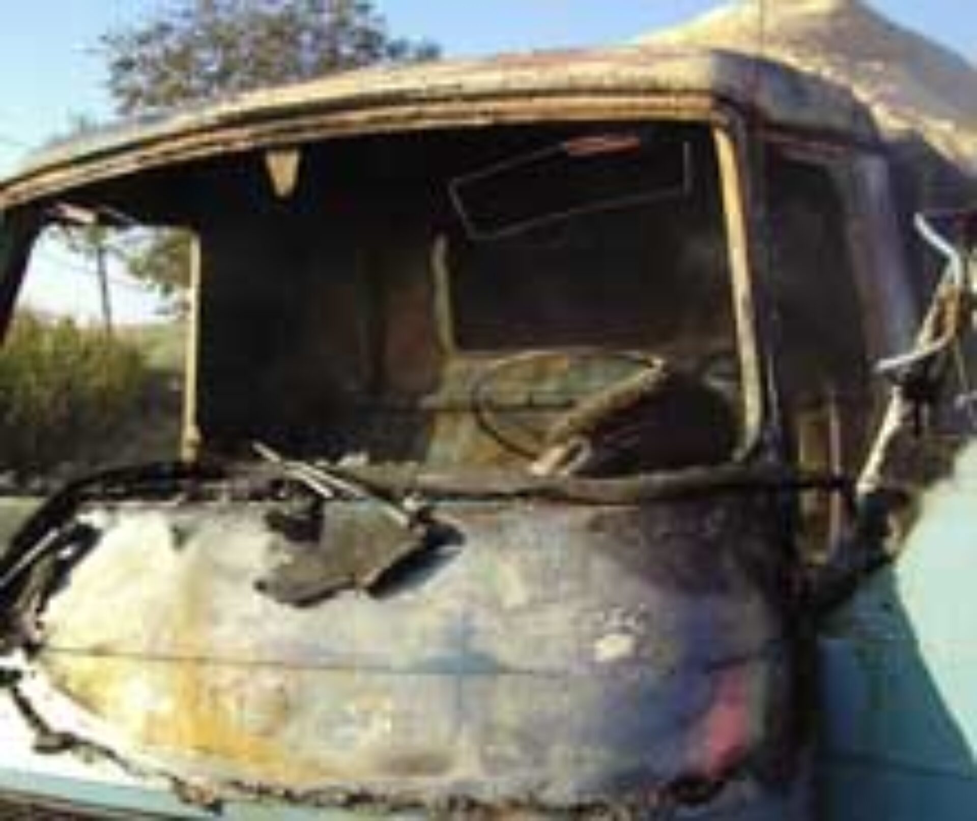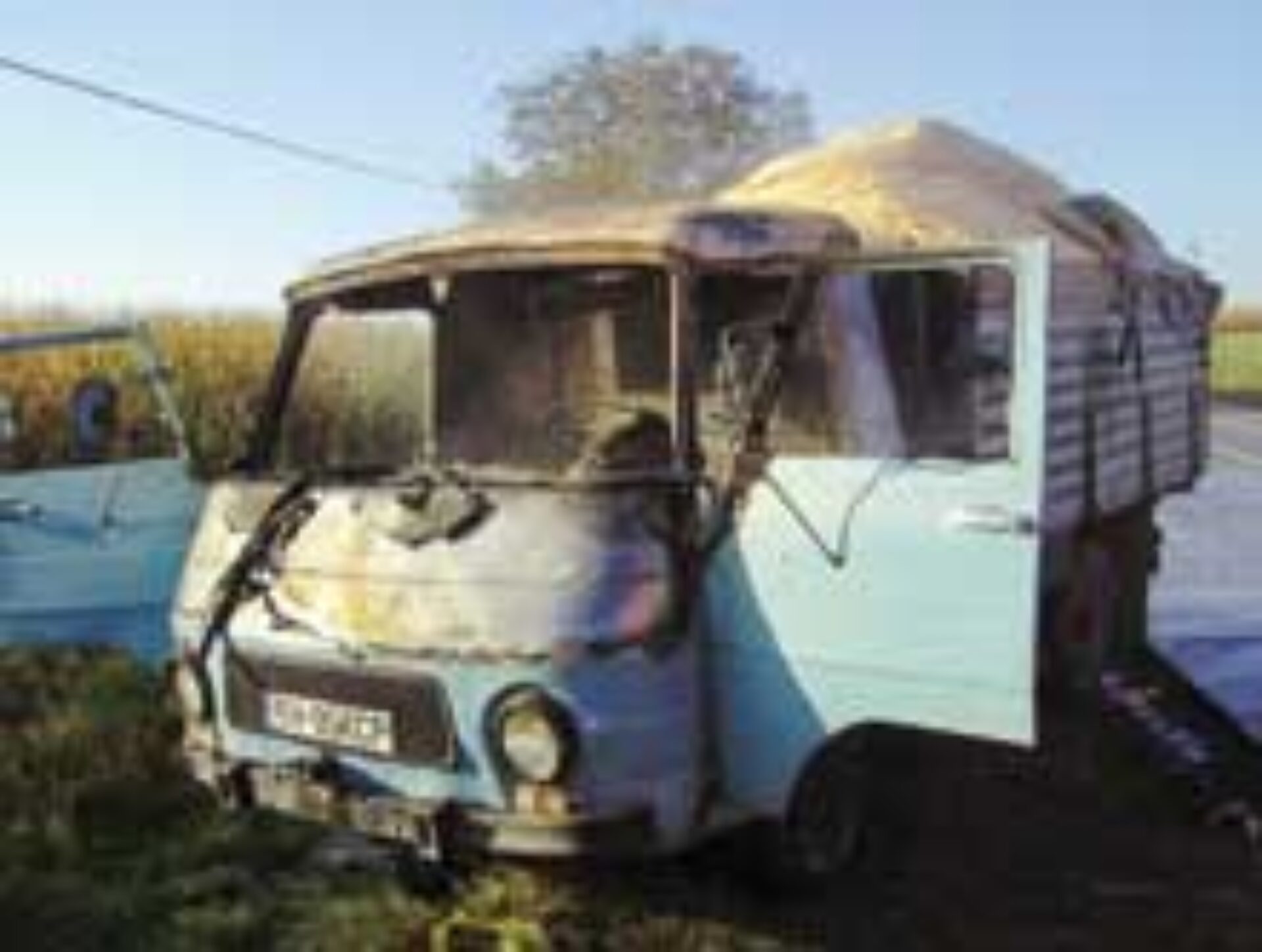 Șoferul unei dube marca TV încărcate cu rumeguș a tras o spaimă sora cu moartea ieri dimineață, în jurul orelor 8.30, după ce autovehiculul la volanul căruia se afla a fost cuprins de flăcări. Respectivul, Florin L., din Moara, mai avea cîțiva kilometri pînă să ajungă în localitatea de domiciliu, moment în care a observat că de sub scaunele mașinii începe să iasă fum. Speriat, șoferul a tras mașina pe dreapta și, văzînd că flăcările încep să cuprindă cabina, a sărit din dubiță. Deși a făcut semn mai multor șoferi care treceau prin zonă să oprească și să sune de pe telefonul mobil la pompieri, a trecut ceva vreme pînă să se găsească unul mai binevoitor care să-l ajute. Deși, pompierii au ajuns în numai cîteva minute din momentul sesizării, deplasînd la fața locului cea mai nouă și rapidă autospecială din dotare, flăcările au mistuit cabina dubiței. Pînă la sosirea pompierilor, șoferul a încercat să lichideze incendiul cu ajutorul stingătorului din mașină, dar flăcările s-au dovedit a fi mult prea puternice. Efectivele pompierilor militari au reușit să stingă focul imediat, limitînd valoare pagubelor la numai 10 milioane de lei (ROL). Cauza producerii acestui incendiu, au stabilit pompierii, a fost efectul termic, provocat de scurgerea de motorină printr-o conductă fisurată.