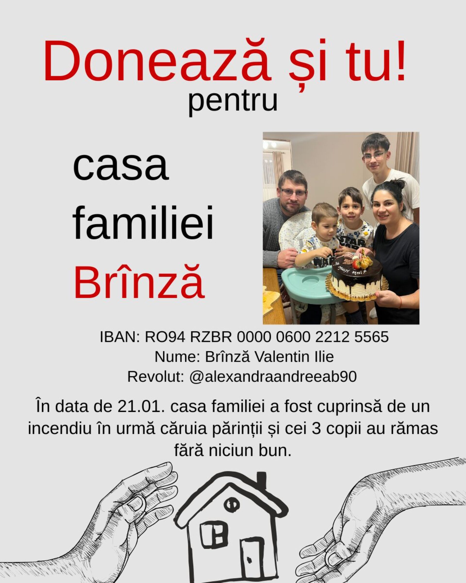 „Prioritatea este strângerea de fonduri pentru ca, odată cu venirea primăverii, să poată începe măcar primele lucrări de construcție. Poate vor primi și ajutor de la primărie, așa ar fi firesc. Cu ajutorul fiecăruia dintre noi, această familie poate avea șansa de a-și reconstrui casa”, a mai adăugat o apropiată a familiei.