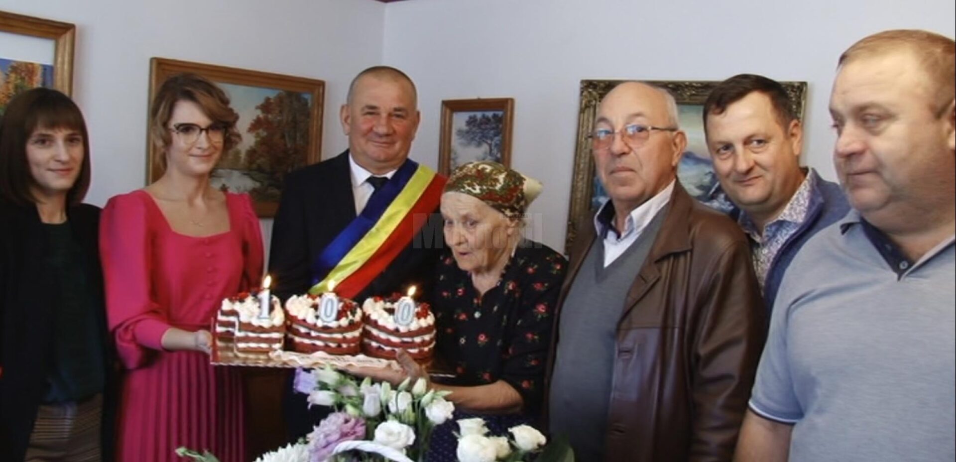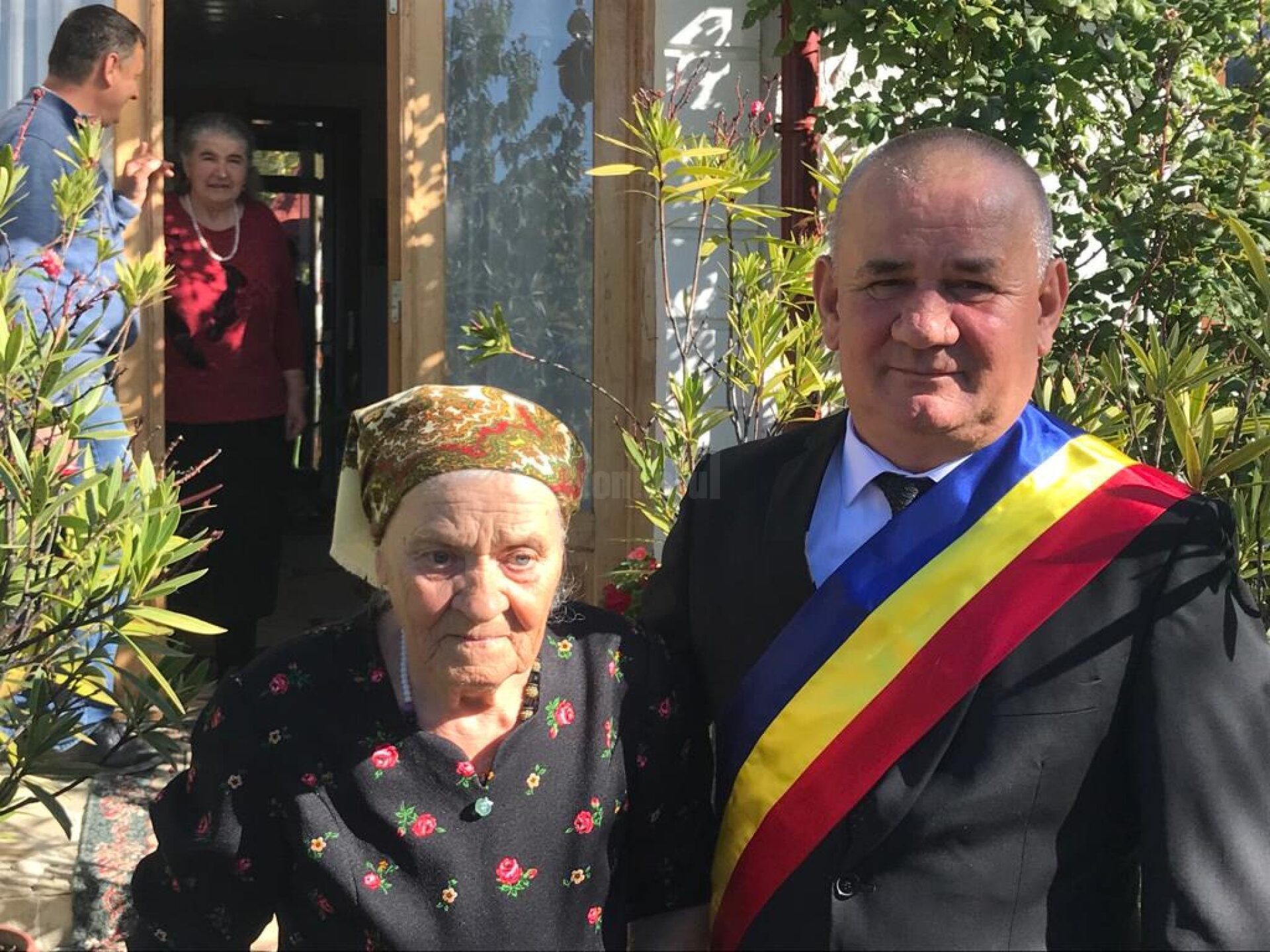 O femeie din Adâncata, Catrina Loghin, sărbătorită personal de primarul Viorel Cucu la împlinirea a 100 de ani
