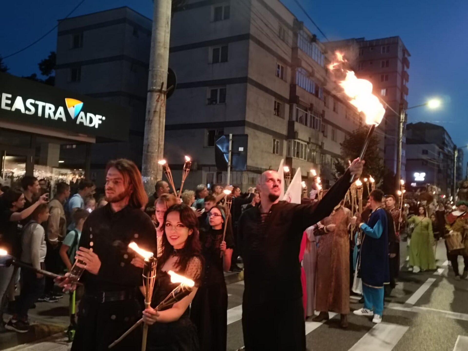 Bătăi de tobe, chipuri luminate de flăcările torțelor, sunet de goarne și arlechini veseli, cai neastâmpărați struniți de luptători neînfricați sau fachiri aruncători de flăcări, cu toții s-au adunat și au pornit în această seară prin Suceava, într-una dintre cele mai mari și mai frumoase parade medievale din țară.