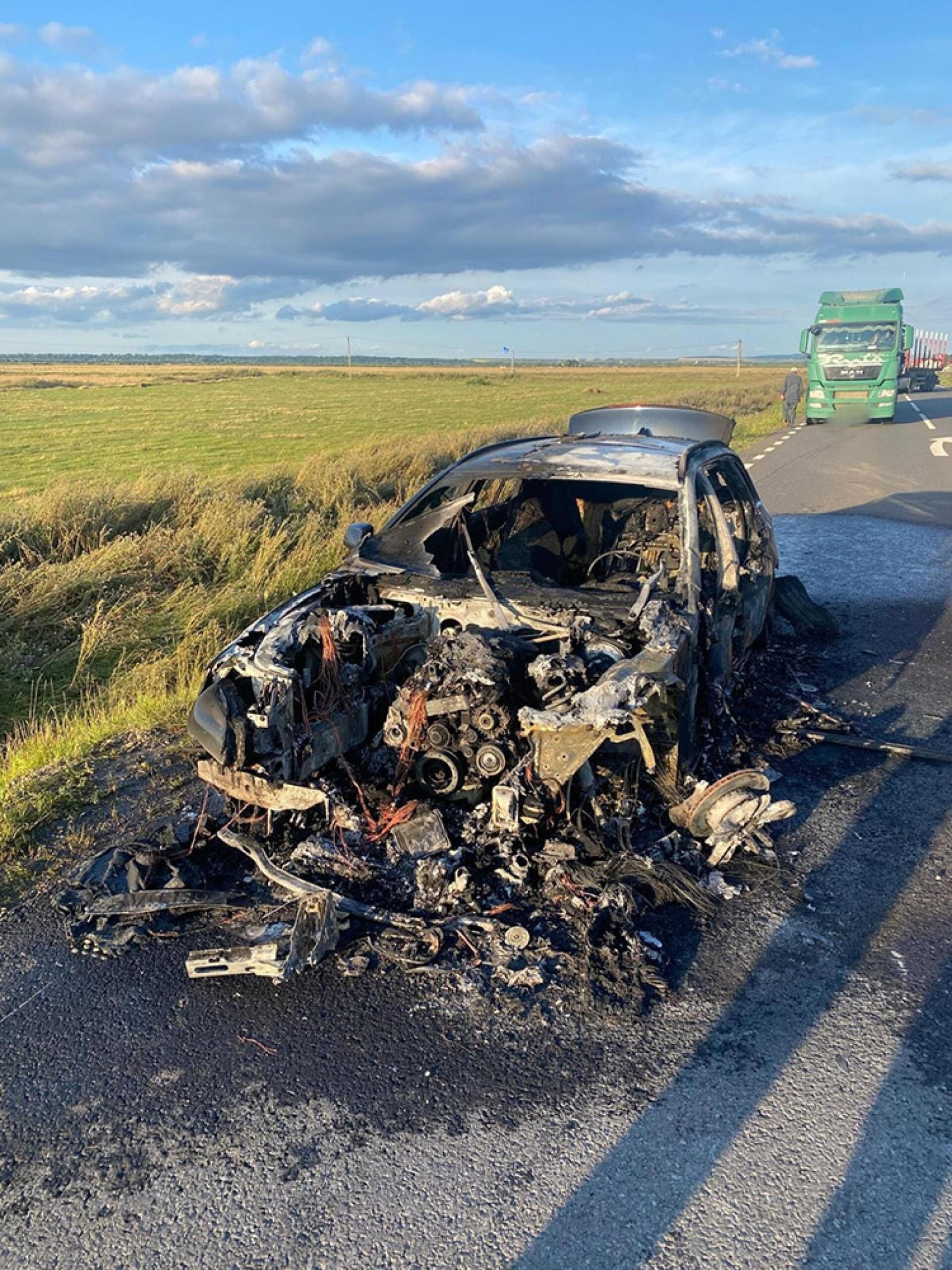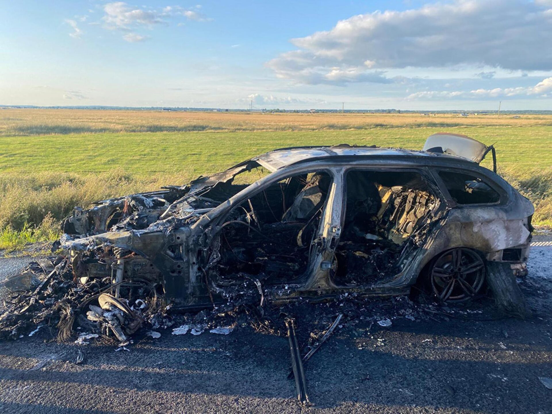 Pompierii au transmis că autoturismul a ars în proporție de aproximativ 90%, iar cauza probabilă de izbucnire a flăcărilor a fost un scurtcircuit.