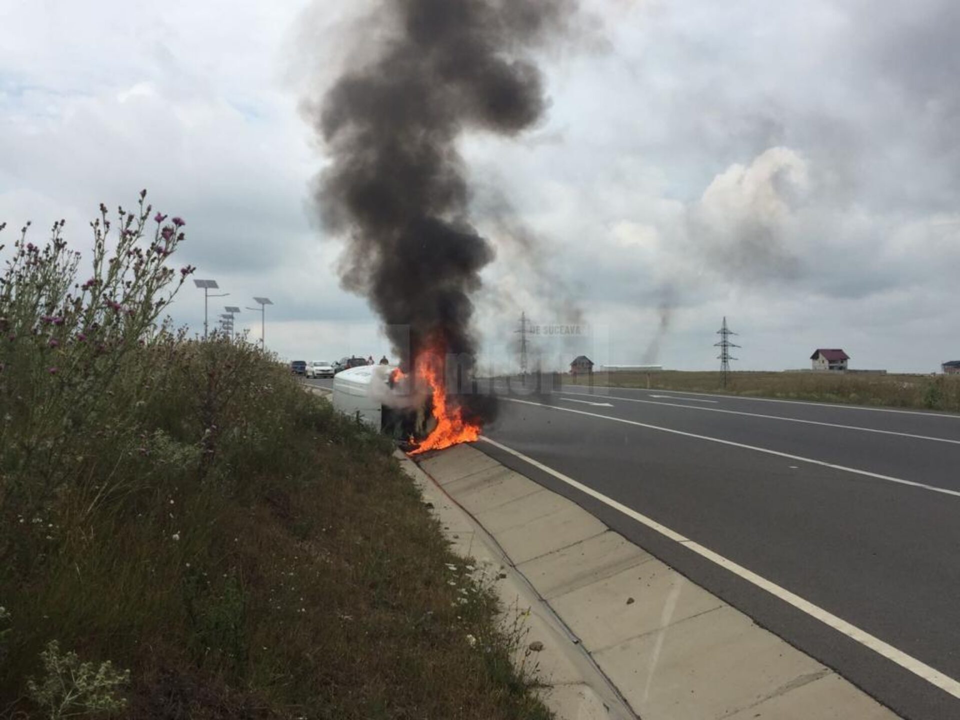 O autoutilitară Dacia a luat foc pe șoseaua de centură a Sucevei, joi după-amiază, după ce șoferul a scăpat mașina de sub control, iar aceasta s-a izbit violent de rigola de la marginea drumului. Accidentul s-a petrecut în jurul orei 17.30, în zona parcării porțiunii deschise a șoselei de centură, iar din fericire nu au fost decât pagube materiale, fără victime. Șoferul de pe autoutilitara Dacia Dokker, care aparține unui producător de cafea, circula pe sensul dinspre Zidul Morții spre E 85 și a pierdut controlul asupra volanului.„Probabil am derapat. Am pus frână, mașina s-a învârtit și am ajuns în șanț. Nu a apărut nimic în față, doar am simțit că mașina fuge, am avut un pic de viteză”, a recunoscut șoferul, în timp ce era evaluat de personalul medical de pe ambulanța sosită la fața locului. Acesta nu avea leziuni, ci doar a fost evaluat pentru a se stabili cert dacă nu are vreo problemă de sănătate. În urma impactului, mașina a luat foc și a ars violent. La fața locului au intervenit pompierii de la Detașamentul Suceava. Focul a fost stins în scurt timp, însă mașina nu a mai putut fi salvată. Autoturismul nu era încărcat cu marfă.