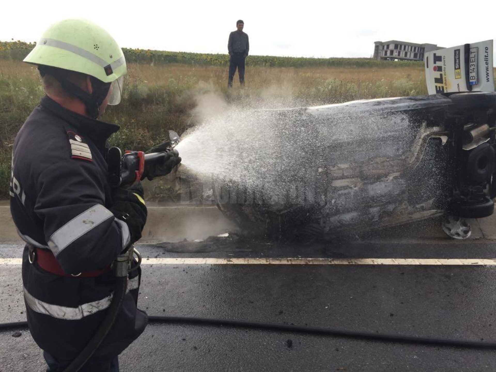 Pompierii au intervenit la fata locului, insa masina nu a mai putut fi salvata