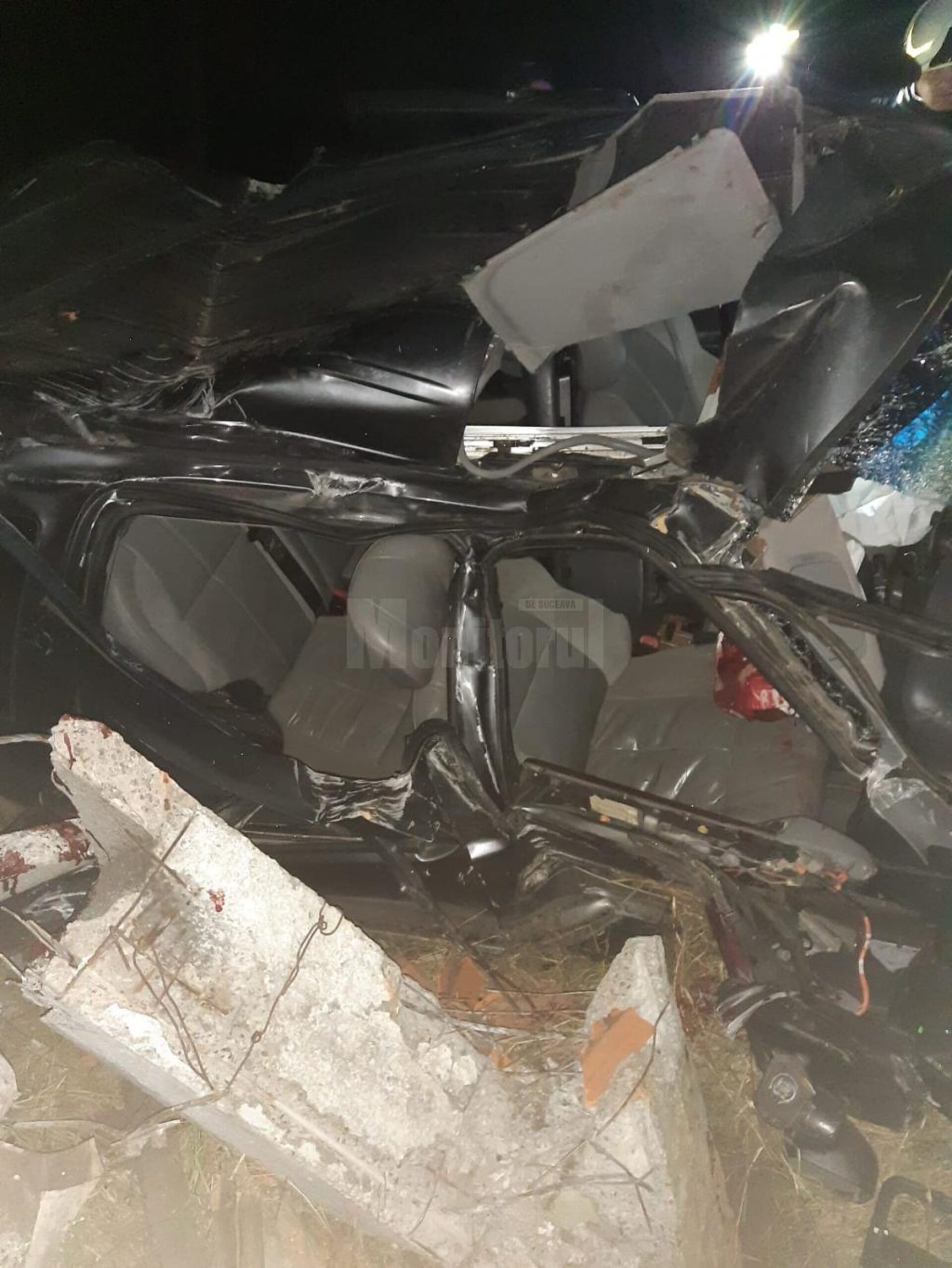 Impact violent între un autoturism și un stâlp de iluminat din beton. Accidentul s-a petrecut în noaptea de sâmbătă spre duminică în localitatea Fundu Moldovei, iar în mașină se aflauz trei persoane.