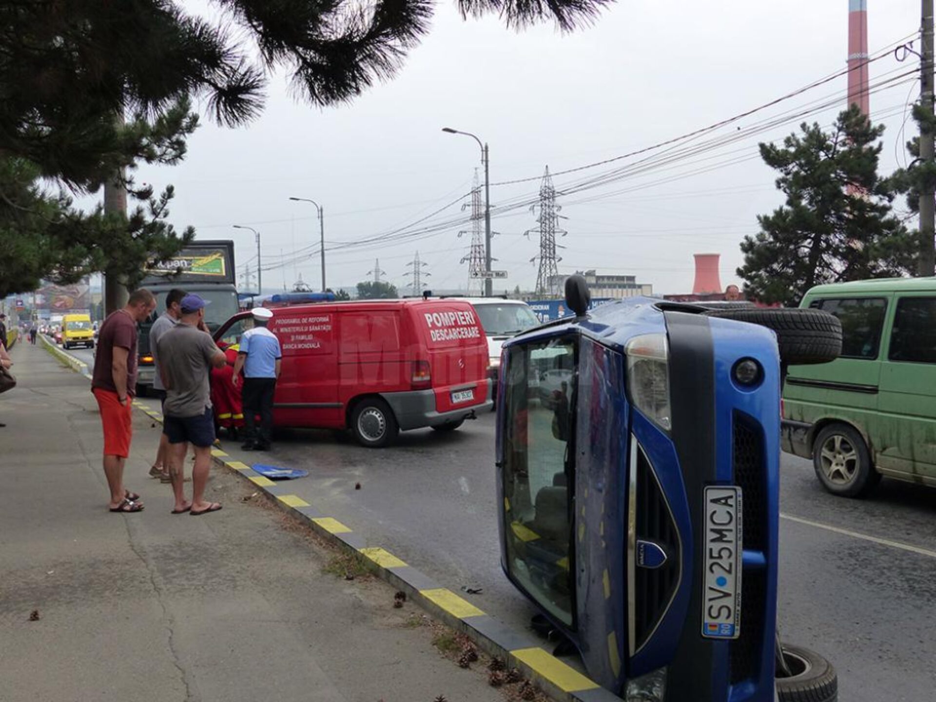 Mihai Z., bărbatul de 60 de ani, circula pe direcția Bazar spre centrul orașului, iar la ieșirea de pe pod a scăpat volanul de sub control. Mașina a lovit capătul scuarului de delimitare a sensurilor de mers, moment în care s-a răsturnat. În mașină se aflau bărbatul de 60 de ani și o tânără în vârstă de 26 de ani. Ambii au ajuns la spital, unde au fost diagnosticați cu leziuni ușoare.