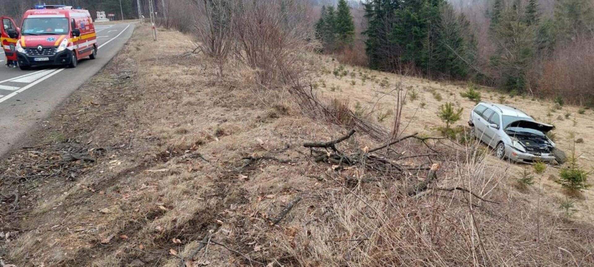 Un autoturism în care se aflau doi adulți și doi copii a ”zburat” în dimineața zilei de sâmbătă de pe șosea. Evenimentul a avut loc pe drumul european 58, în zona fostei cabane de la Ilișești, iar mașina a ieșit de pe carosabil și s-a oprit la circa 20 de metri. Din fericire, nici o persoană nu a suferit leziuni și nu a necesitat transportul la spital. Polițiștii de la Rutieră au preluat ancheta și urmează să stabilească exact ce anume s-a întâmplat.