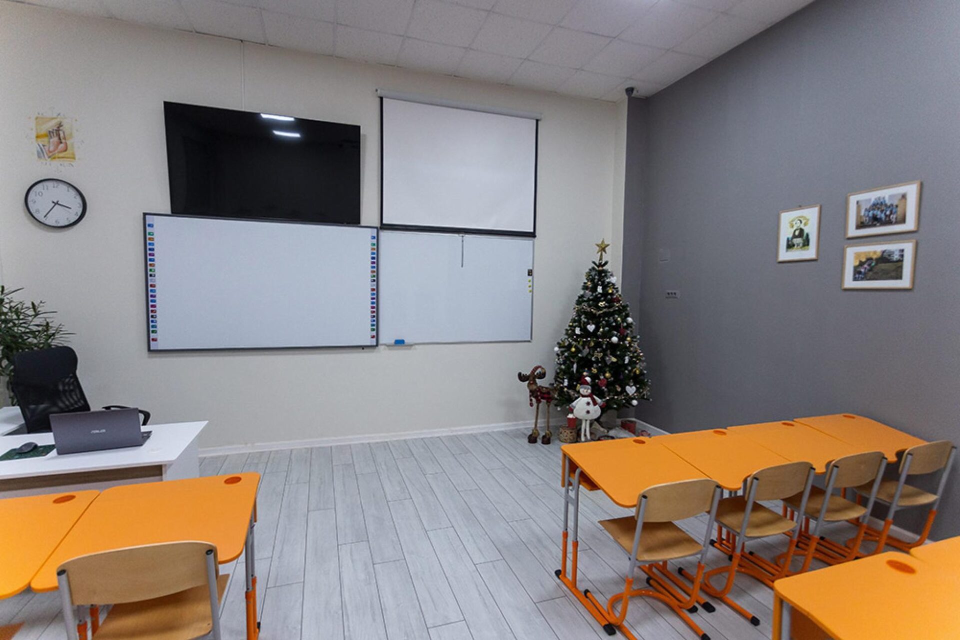 Sala de clasă a fost dotată cu tablă interactivă de tip smartboard, televizor LCD, videoproiector, imprimantă multifuncțională, laptop și tabletă grafică la catedră și sistem audio performant.