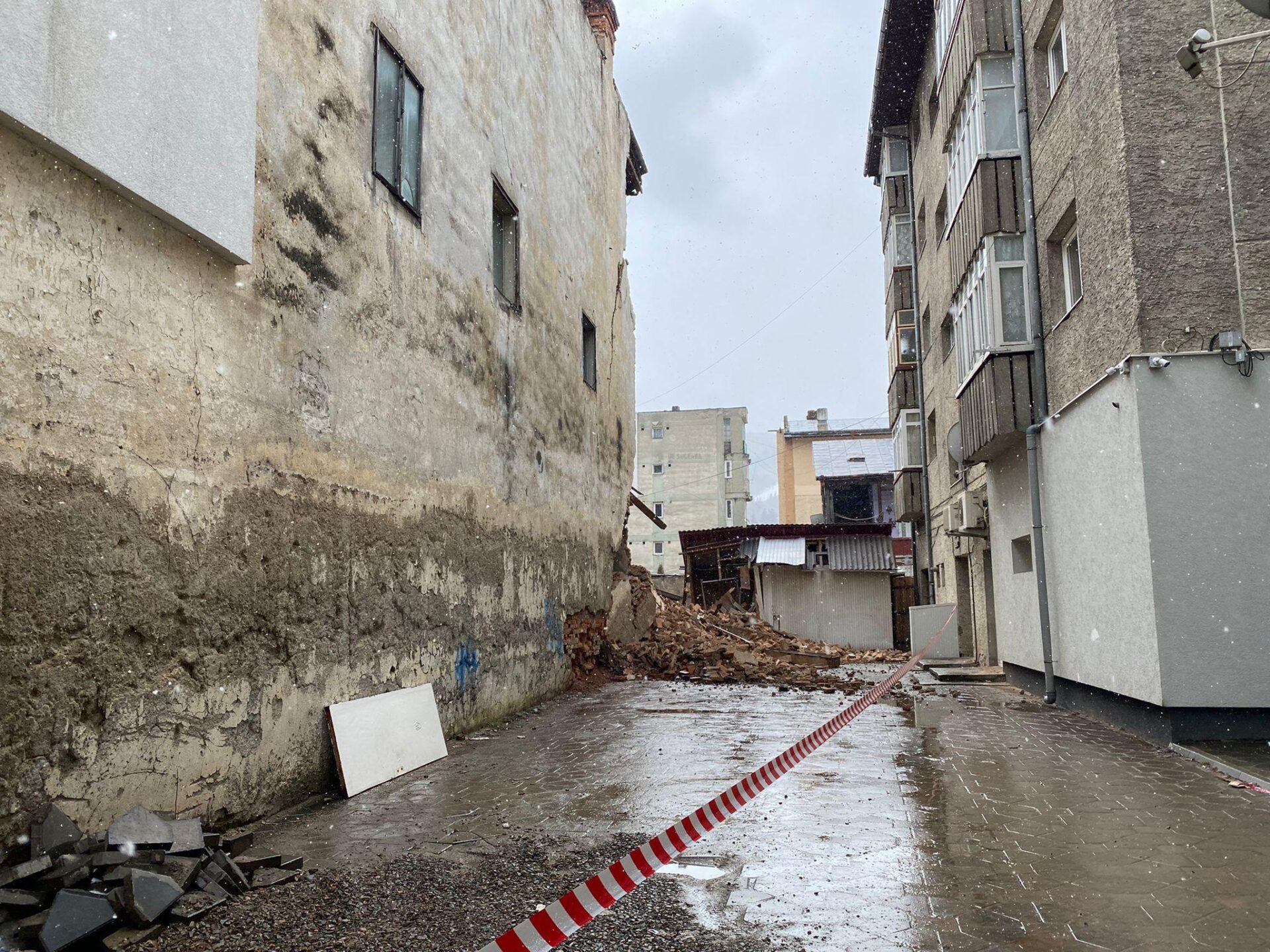 „Dimineață, pe la 05.00, am fost sunat de la Poliția Locală și am fost informat că o parte din peretele din spate s-a prăbușit. S-a mai surpat și înainte, dar iarna a afectat și mai mult partea asta și surparea a continuat. Poliția Locală a luat măsuri pentru asigurarea zonei”, a declarat duminică primarul.