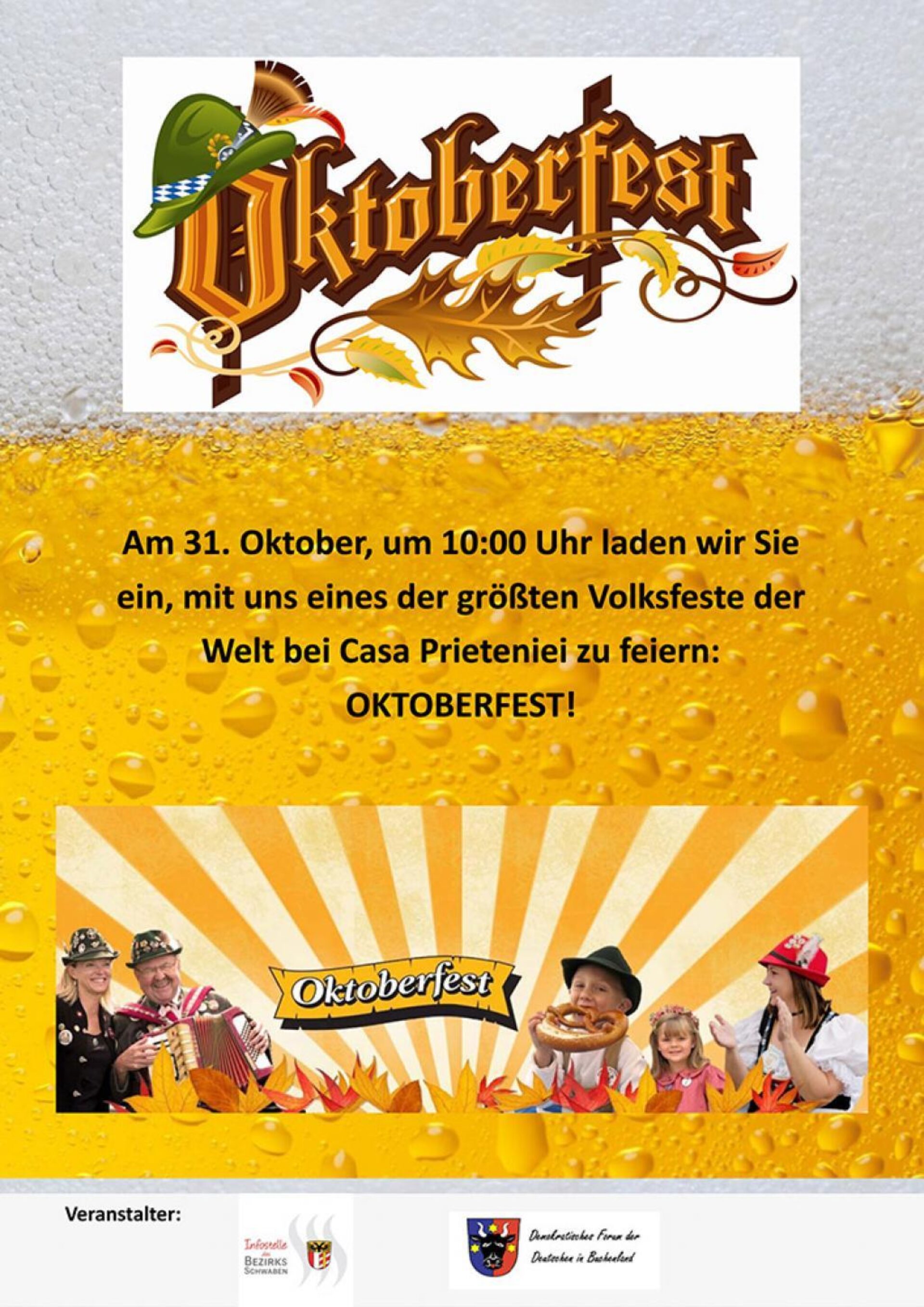 Biroul Informațional al Regiunii Schwaben, în colaborare cu Forumul Democrat al Germanilor din Bucovina, organizează sâmbătă, 31 octombrie, începând cu ora 10.00, Oktoberfest la „Casa Prieteniei” Suceava.