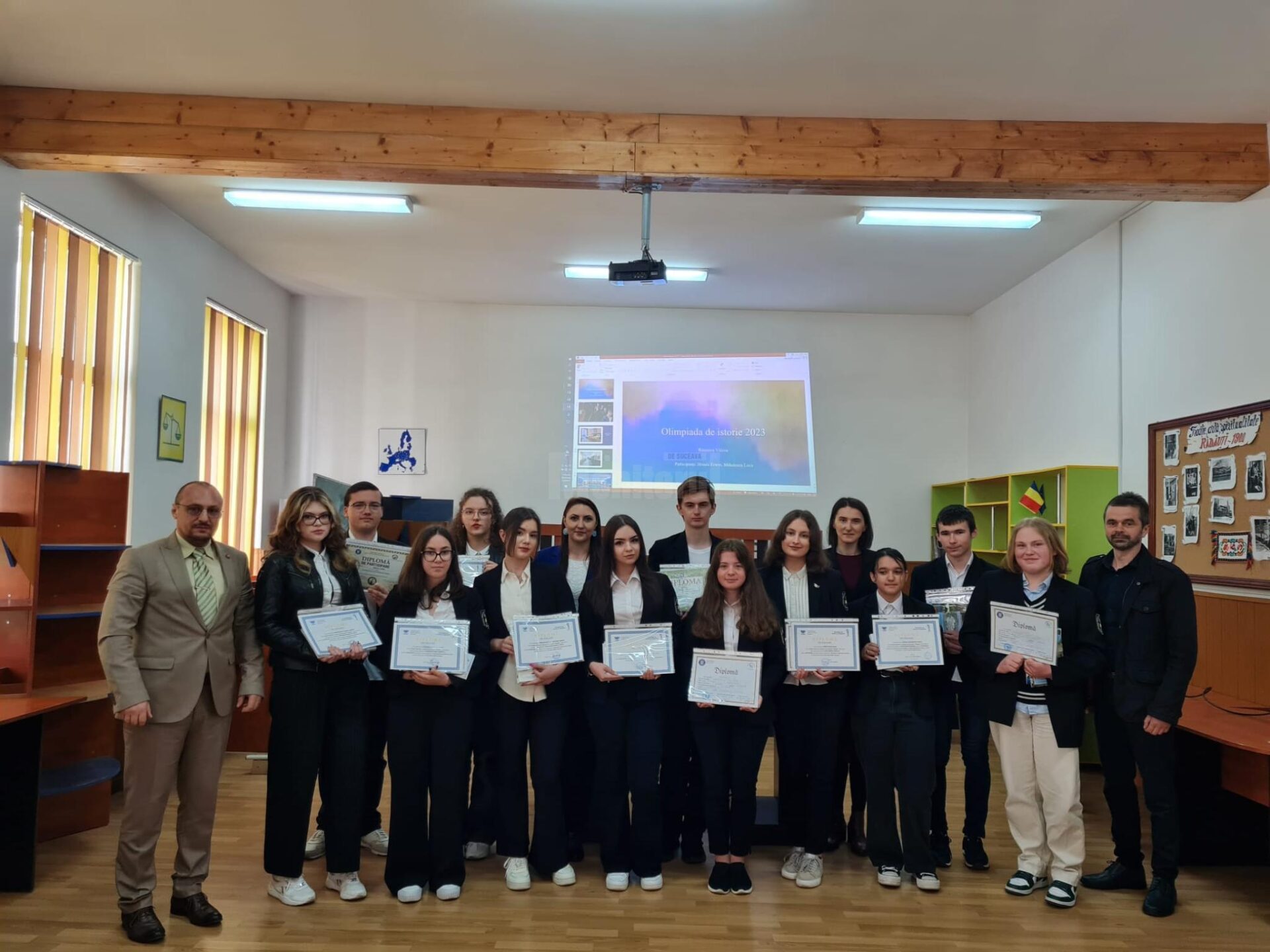 Printre altele, au fost premiați și cei 12 elevi care au obținut premii și mențiuni la faza județeană a olimpiadei de istorie pentru clasele VIII-XII și a micii olimpiade de istorie Clio pentru clasele V-VII, astfel: Premiul I au obținut elevii Puiu Albert Gabriel, clasa a VII-a, coordonat de prof. Dumitru Bistricean, și Mihalescu Luca Ștefan, clasa a IX-a E, coordonat de prof. Ana Gabriela Pogorevici; Premiul al III-lea au obținut elevii Gheorghiu Bianca, din clasa a X-a F, coordonată de prof. Nicoleta Mitrofan, și Hriscu Erwin, din clasa a XII-a E, coordonat de prof. Nicoleta Mitrofan; Mențiune au obținut elevii Ionesi Alexandra Elena, din clasa a VII-a, coordonată de prof. Dumitru Bistricean, Prelipcean Iulia, Cârstean Viorel Cornel și Bodnariuc Nicola, toți din clasa a X-a E, coordonați de prof. Adrian Puiu, Pătrăucean Bianca, din clasa a XI-a E, coordonată de prof. Ana Gabriela Pogorevici, Moldovan Antonia Maria, din clasa a XI-a G, coordonată de prof. Nicoleta Mitrofan, Teleagă Eliza Iustina, din clasa a XI-a F, coordonată de prof. Ana Gabriela Pogorevici, și Simionesi Denisa Maria, din clasa a XII-a E, coordonată de prof. Nicoleta Mitrofan.