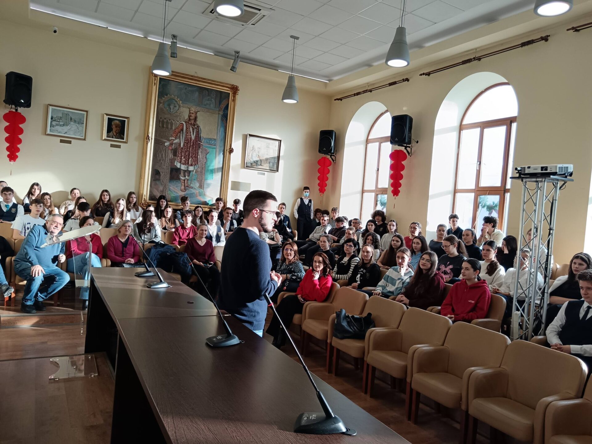 David le-a vorbit elevilor despre drumul spre universități de top, motivație și le-a transmis adolescenților un mesaj plin de îndemn și speranță: studiul la nivel internațional este posibil prin muncă, dedicare și curaj.