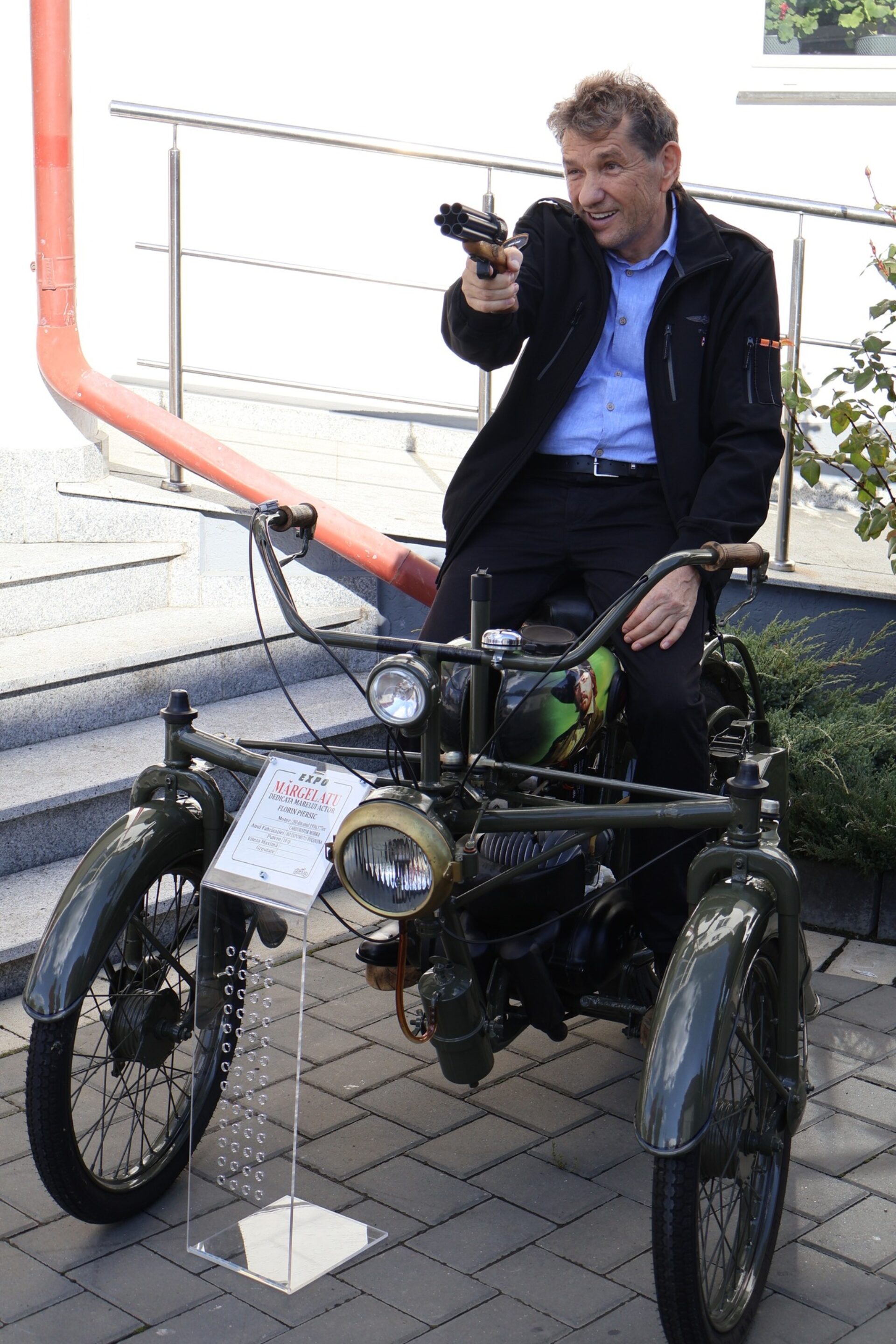 Florin Piersic a fost invitat special la această expoziție unică în țară, unde i-a fost prezentată o motocicletă cu totul specială, care a primit numele „Mărgelatu”, construită manual de Alexandru Șcheul în semn de admirație pentru actor.