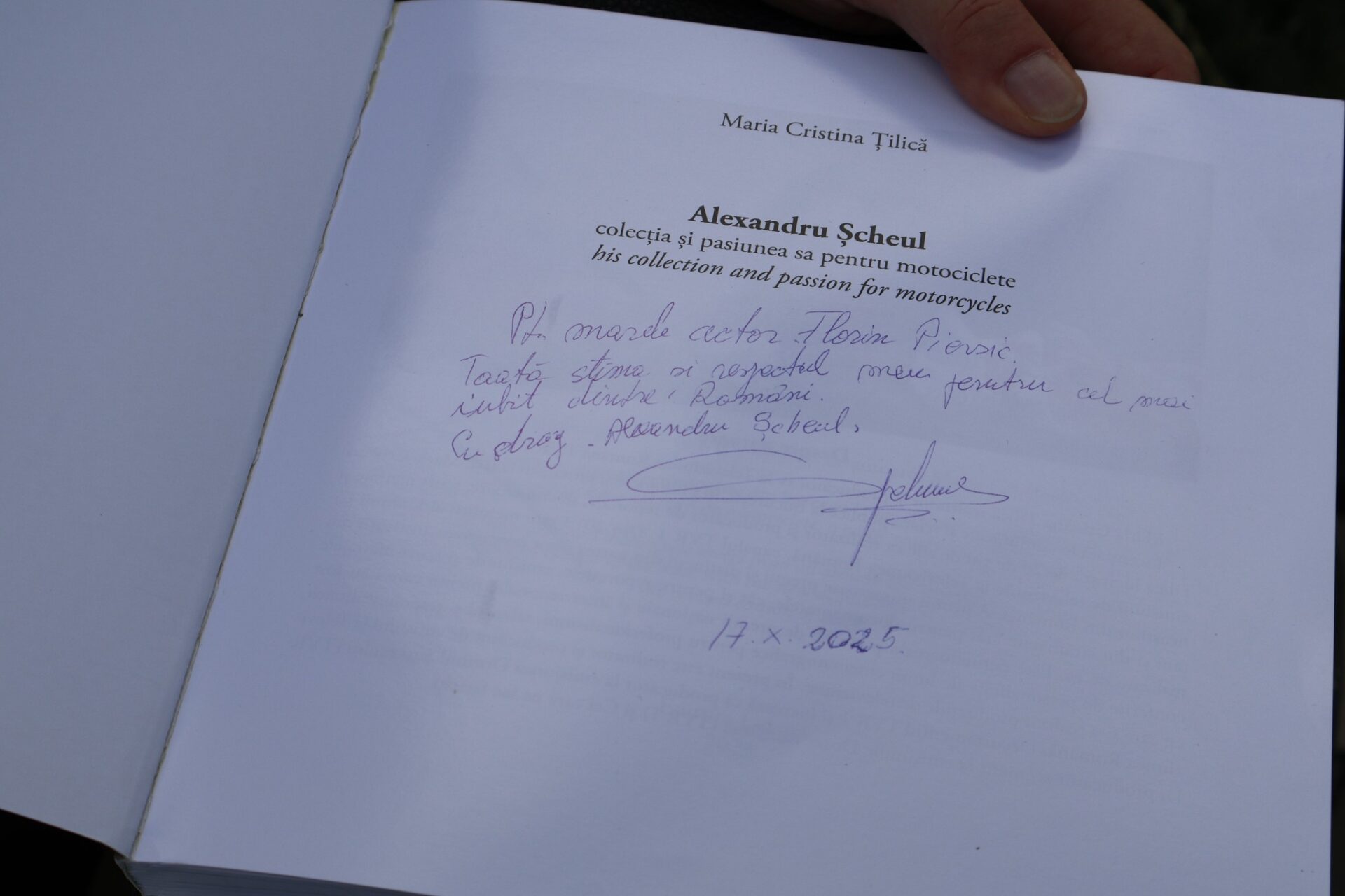 La rândul său, omul de afaceri sucevean i-a oferit lui Florin Piersic cartea „Alexandru Șcheul, colecția și pasiunea sa pentru motociclete”, pe care a scris mesajul „Pentru marele actor Florin Piersic. Toată stima și respectul meu pentru cel mai iubit dintre Români”.