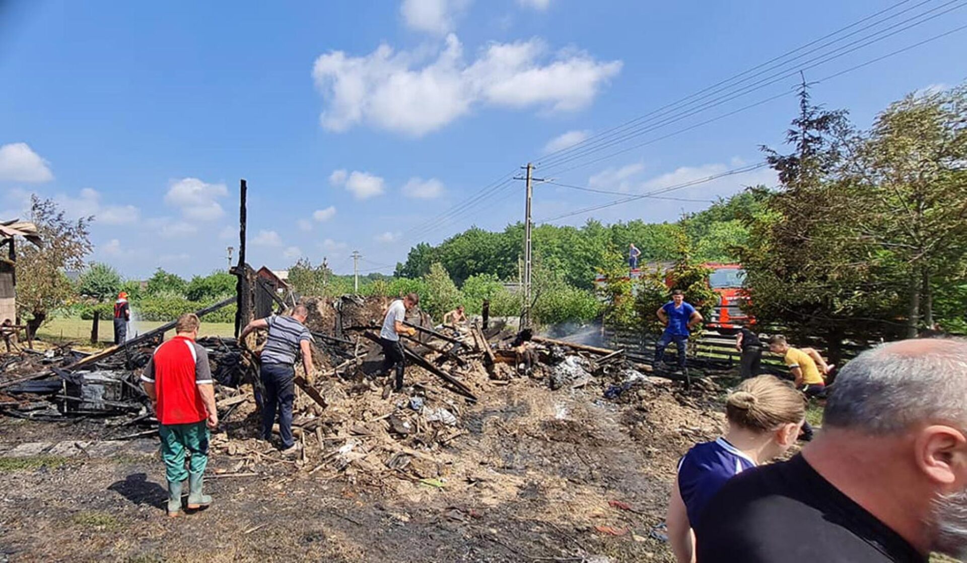 La sosirea echipajelor de pompieri la fața locului, luni dimineață, ardeau generalizat acoperișul casei și adăpostul de animale, cu pericol de propagare la construcțiile învecinate.