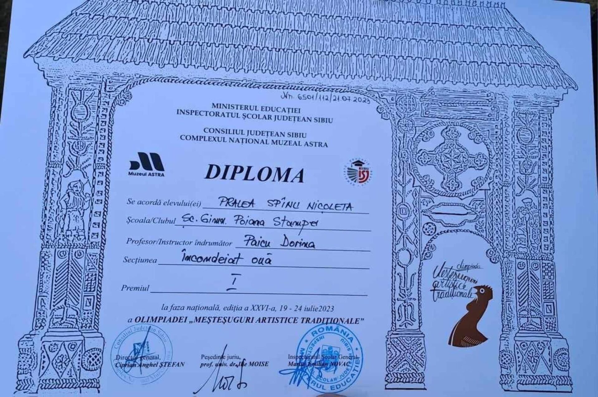 „Felicitări pentru asigurarea continuității tradițiilor autentice și pentru promovare. Îi dorim Nicoletei mult succes în proiectele viitoare. Ne bucurăm că va fi elevă la Colegiul Național «Mihai Eminescu» și a optat pentru cariera didactică, fiind convinși că va reveni în comunitate, să fie o talentată învățătoare, alături de următorii elevi ai școlii. Aprecieri deosebite se îndreaptă și către mama Nicoletei, meșterul popular Lucica Pralea Spînu, pentru creșterea frumoasă, pentru transmiterea meșteșugului și pentru colaborarea cu școala”, ne-a mai spus prof. Dorina Paicu, de la Școala Gimnazială Poiana Stampei, îndrumătoarea elevei câștigătoare la olimpiada națională.
