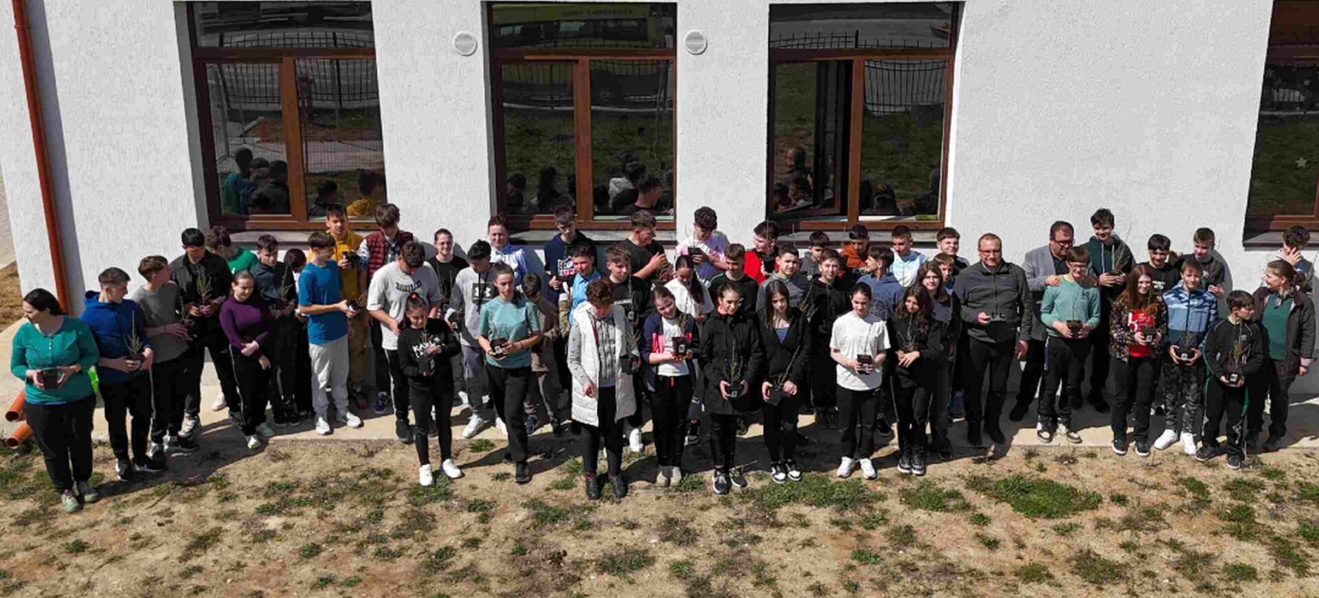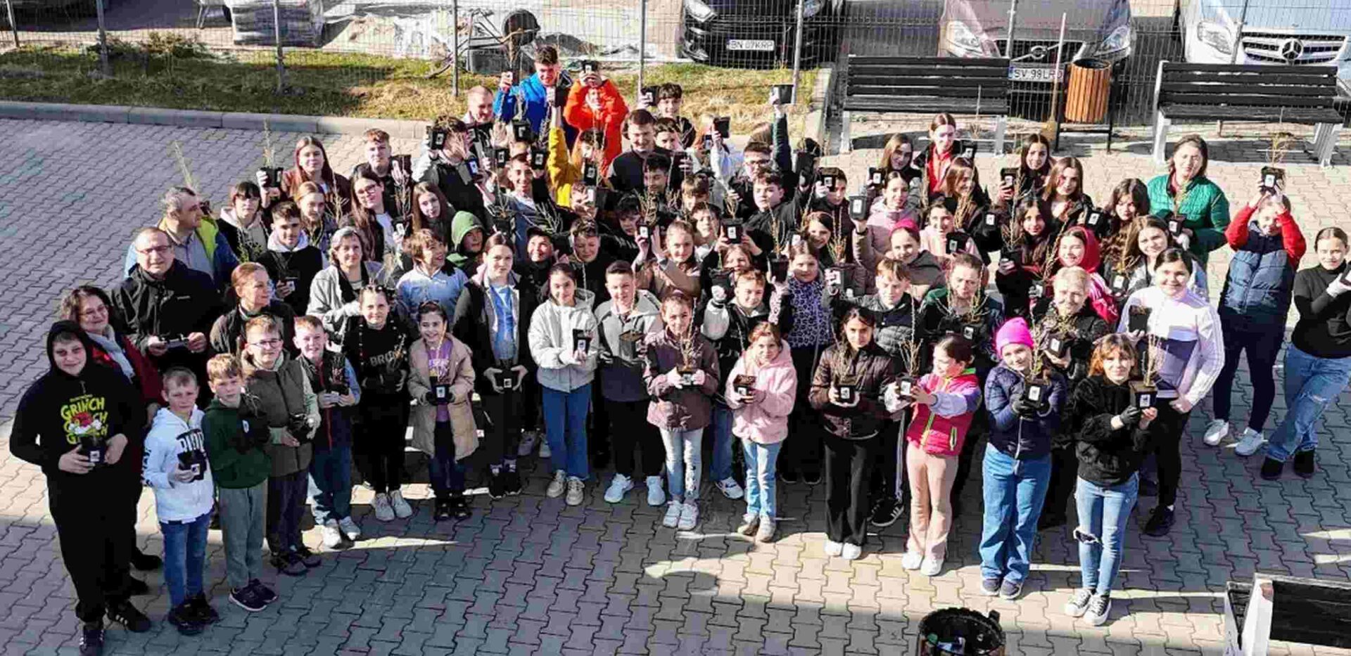 În total, peste 1.000 de puieți au prins rădăcini în curțile a 9 școli din județele Suceava, Mureș, Harghita și Bistrița-Năsăud.