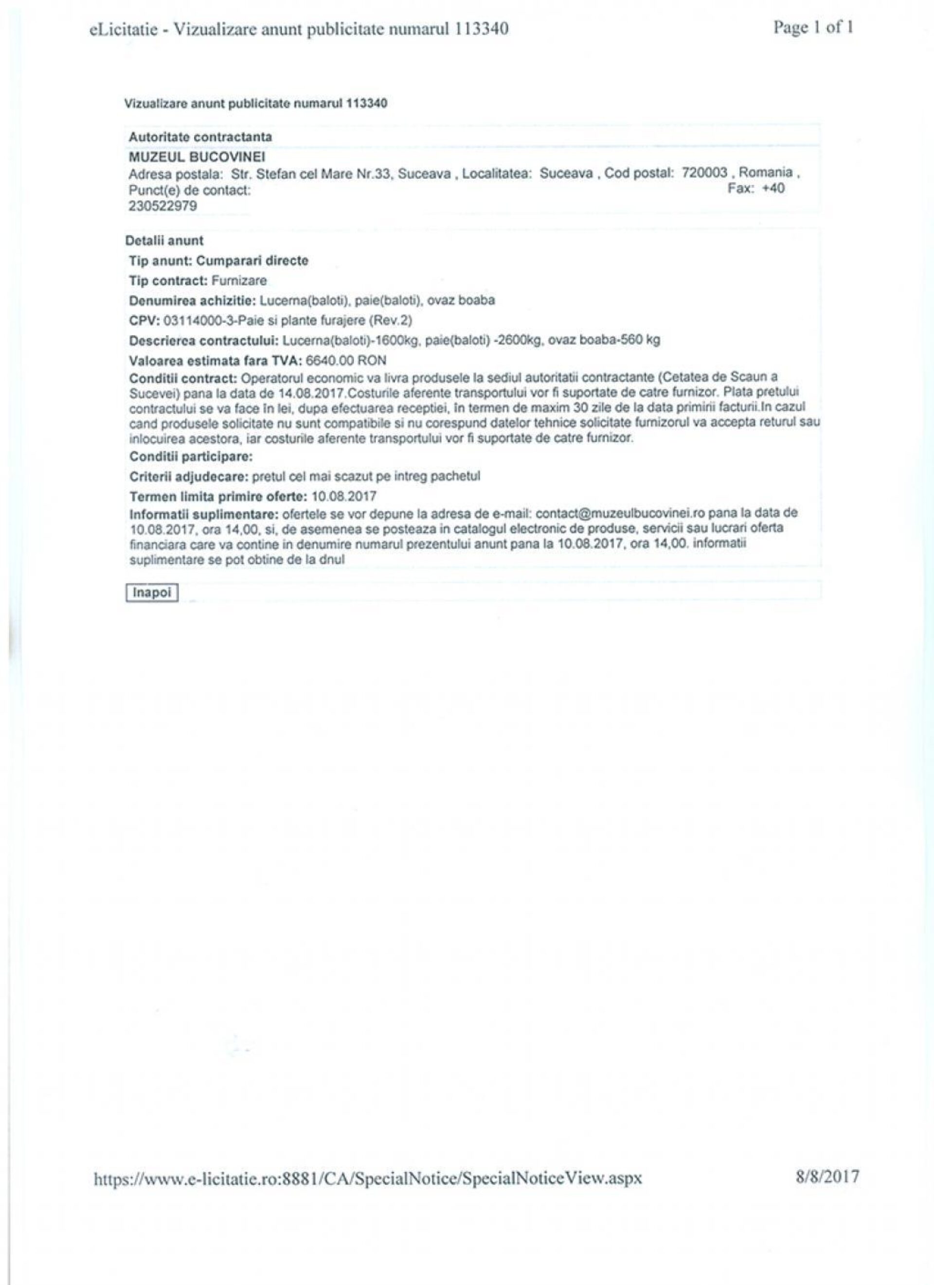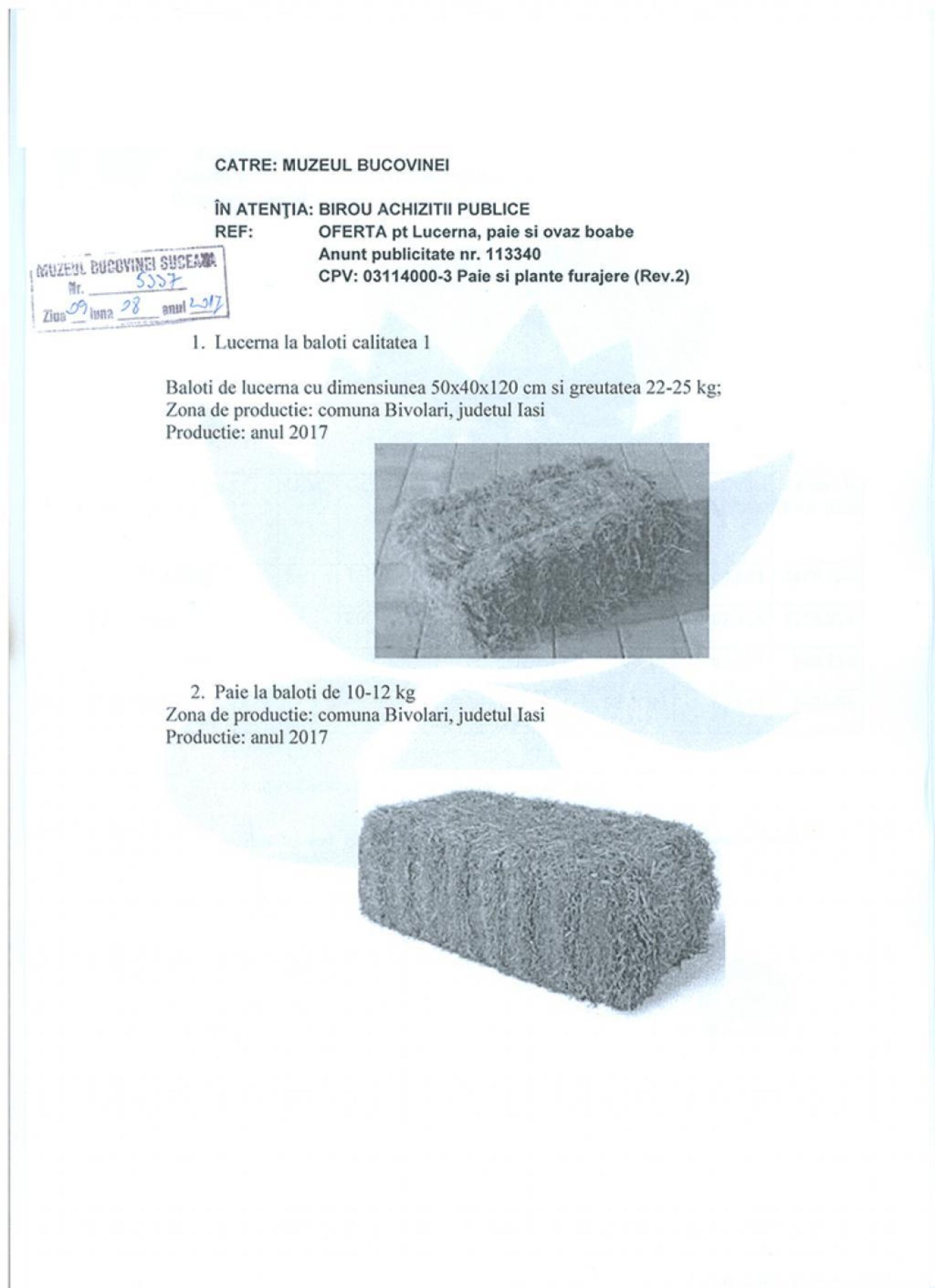 Ofertele la nutreț au fost prezentate pe SEAP după aceleași rigori ca ale oricărui alt produs, inclusiv cu fotografii cu baloți de paie și lucernă și cu boabe de ovăz.