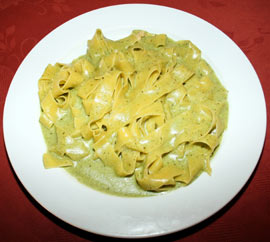 Se fierb pastele în apă cu sare iar în paralel se pregătește sosul astfel: se toacă mărunt busuiocul și usturoiul apoi se topește untul și uleiul de măsline împreună cu smântâna. La final, se adaugă busuiocul, usturoiul și pastele după care se trag la tigaie și se servesc fierbinți.