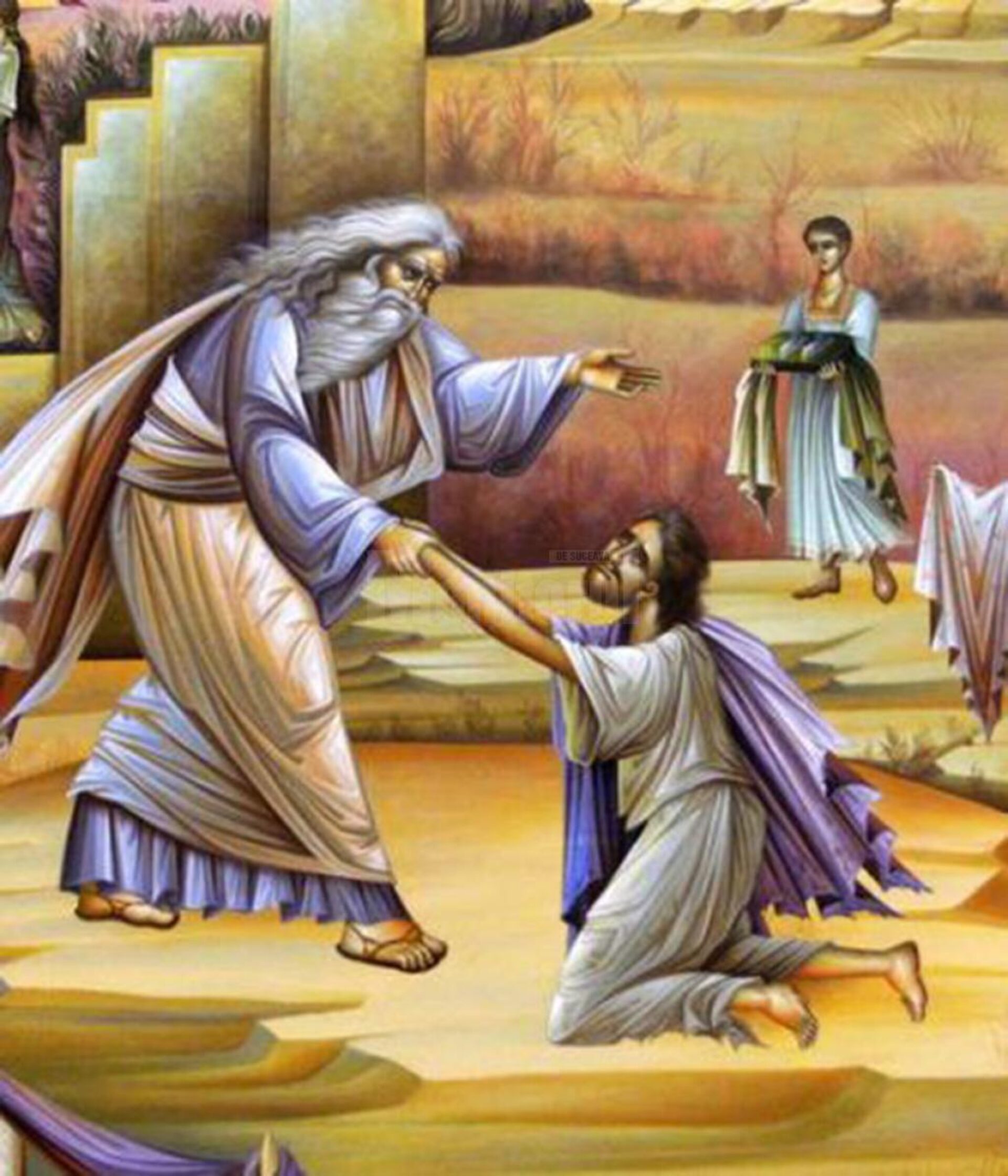Un părinte avea doi fii. Fiecare a primit partea lui de moștenire, dar fiul cel mic, nechibzuit fiind, și-a luat lumea în cap, a plecat de acasă și a cheltuit toată avuția în petreceri și destrăbălare. A ajuns, până la urmă, într-o cruntă mizerie, tocmindu-se păstor al unei turme de porci. Cuprins de remușcări, dar și de oarece edificări, se întoarce acasă cu gândul că ar fi fericit dacă ar ajunge argat în casa părintească. Spre uimirea sa, tatăl îl primește cu mare fast, dându-i veșminte curate și pregătind o masă mare, pentru care a sacrificat vițelul cel gras. „Și aduceți vițelul cel îngrășat și-l înjunghiați și, mâncând, să ne veselim. Căci acest fiu al meu mort era și a înviat, pierdut era și s-a aflat” (Luca 15.23-24). Fiul cel mai mare, văzând toate acestea, s-a simțit nedreptățit întrucât el, cu toate că fusese credincios tatălui său, nu se bucurase niciodată de atâta cinstire. La reproșurile sale, tatăl lasă să se înțeleagă că întoarcerea acasă și recuperarea unui păcătos socotit pierdut este de mare folos și trebuie să constituie un prilej de mare bucurie.