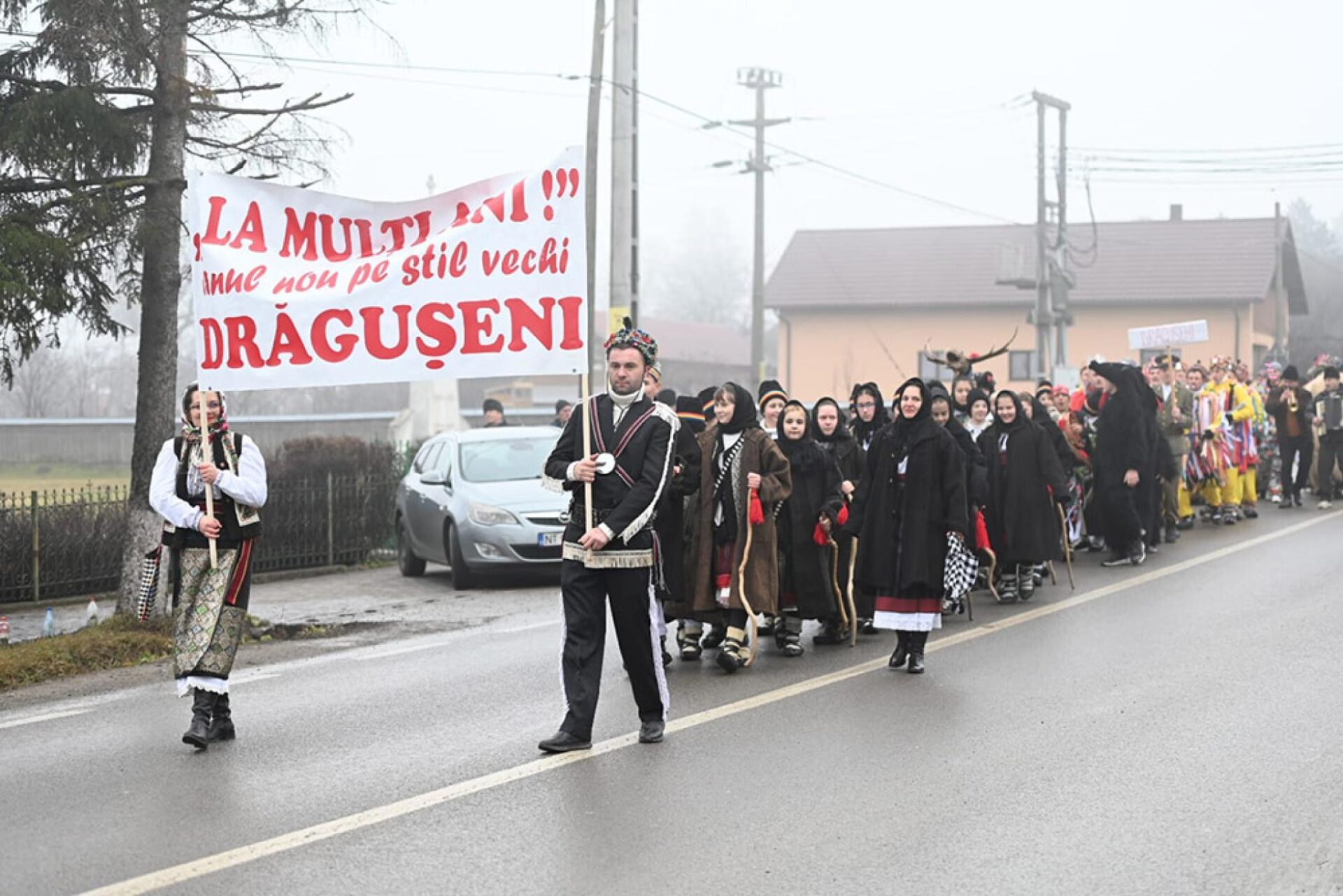 Coloana de urători a fost deschisă de gazde, care în fiecare an au purtat o pancartă pe care se putea citi mesajul „La mulți ani! Anul nou pe stil vechi Drăgușeni”. În paradă au urmat cetele de urători din Fântânele, Ostra, Vadu Moldovei, Mălini, Păiseni – Cornu Luncii, Dolheștii Mari, Bogdănești, dar și grupurile din județele învecinate de la Răucești, Miroslovești și Ruginoasa.