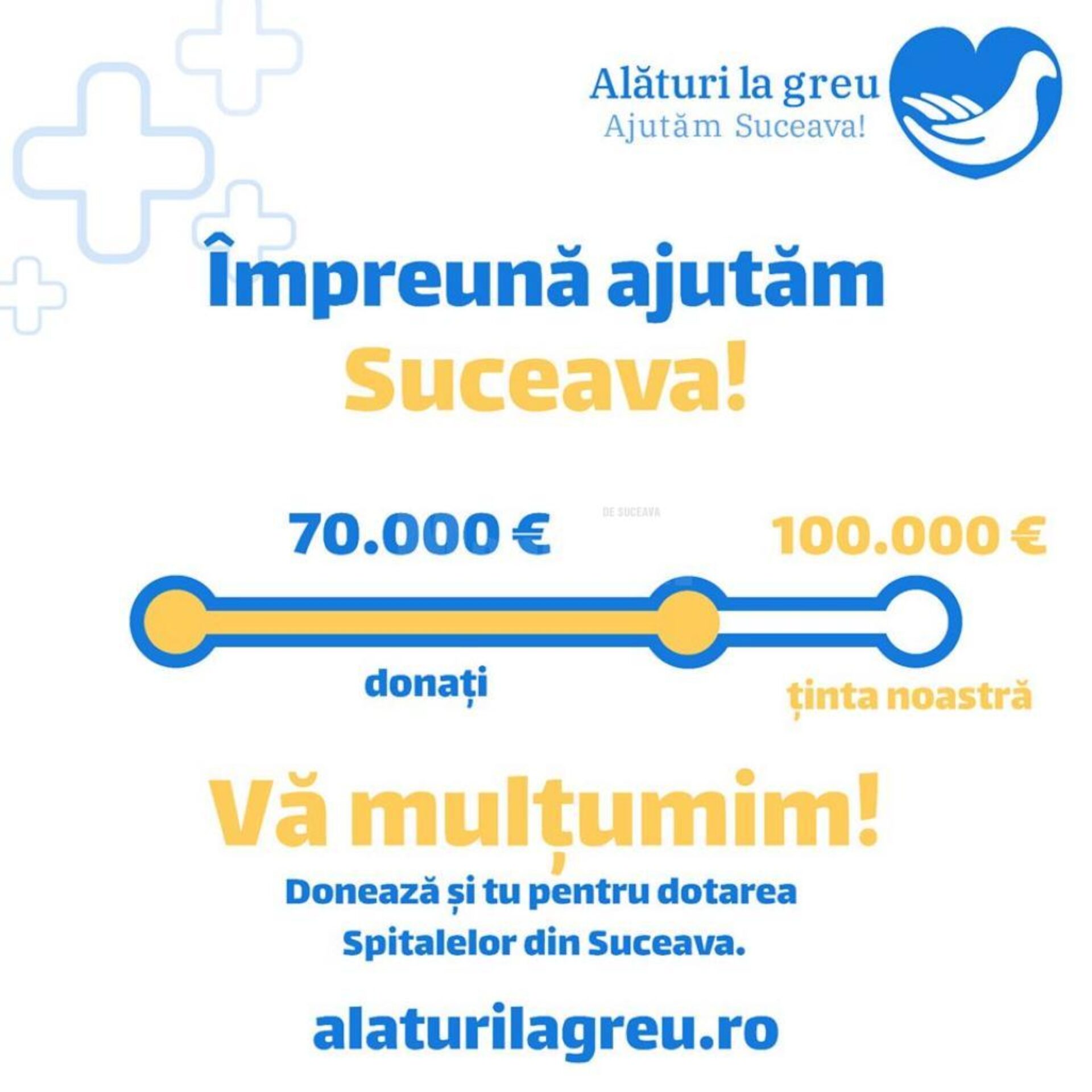 Puteți dona în continuare pentru susținerea cadrelor medicale din județul Suceava, prin: echipament de protecție (mănuși de unică folosință, măști, ochelari, combinezoane etc.) și dezinfectant; aparatură medicală specifică (monitoare pentru funcțiile vitale, ventilatoare mecanice, kituri de testare etc.). Orice ajutor este bine-venit și constructiv!